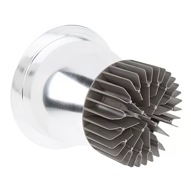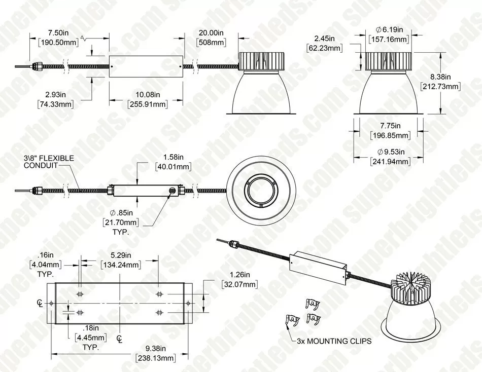 - Low-heat aluminum housing with polished reflector and matte white trim