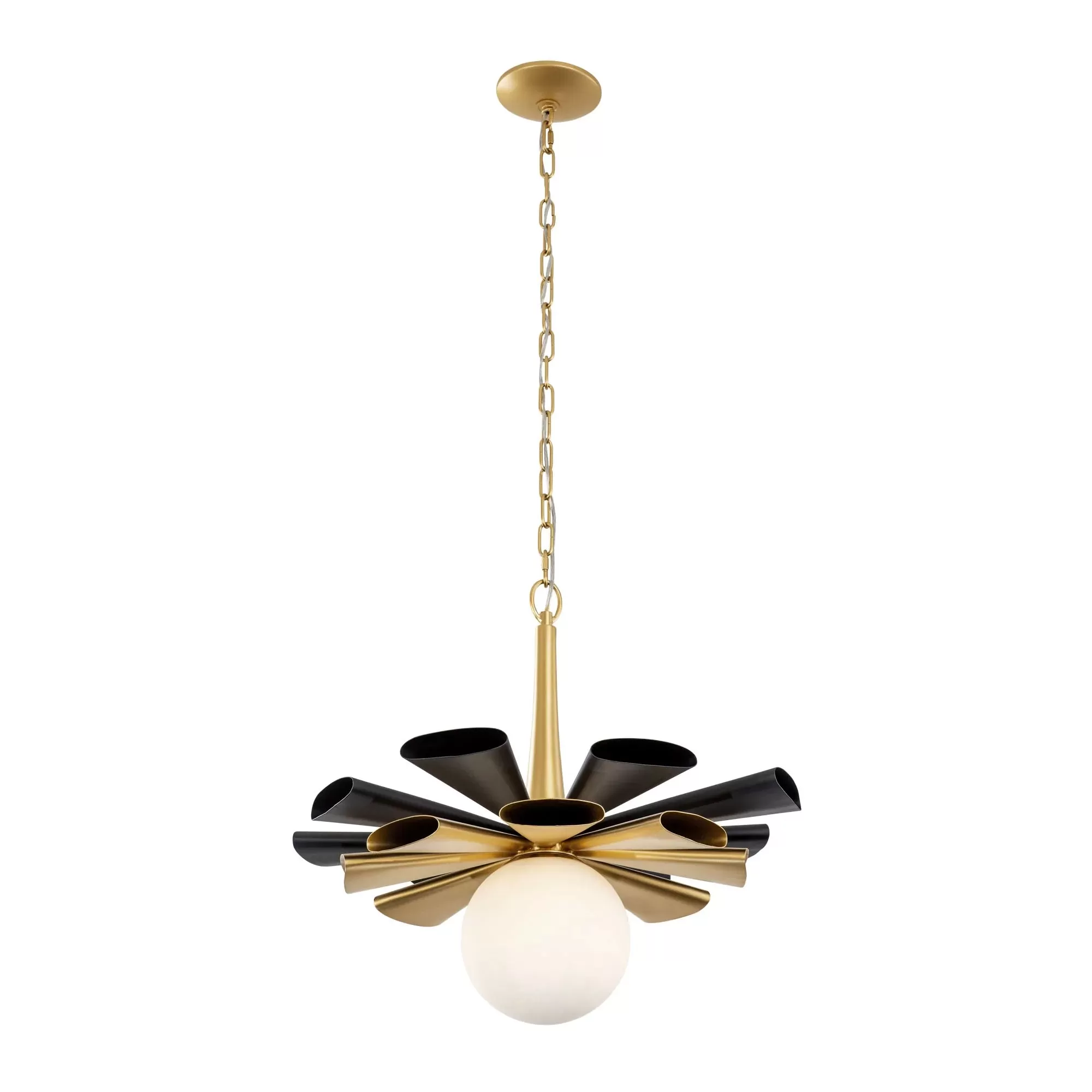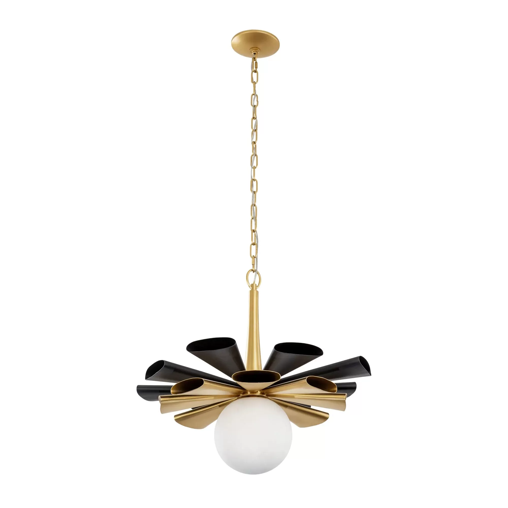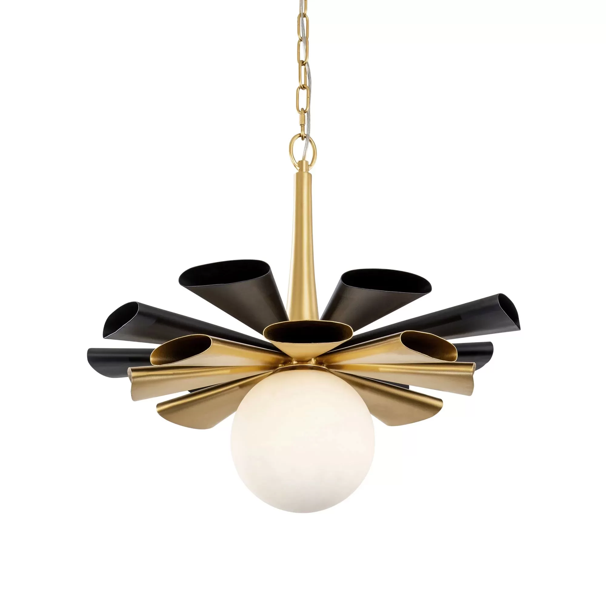 Hand-forged Tapered Oval Tubing. Hand-applied Matte Black and French Gold. Recycled Opal White Glass Globe