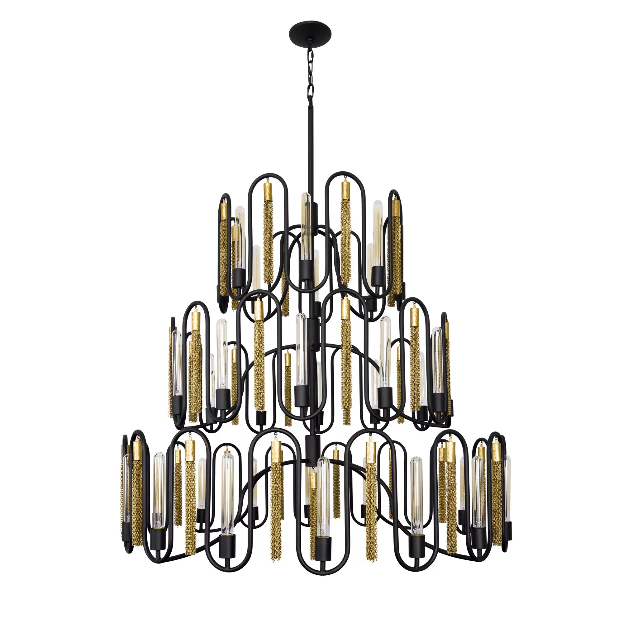 The fluid grace of the Darden Collection conveys a bold, yet tempered strength as the eye follows the parabolic connections between Edison bulb stalagmites and hand-made jewelry chain stalactites. Hints of classic Greek design are apparent in its footprint while gold or silver accents evoke a bohemian warmth. The eye is intrigued, searching for a beginning or an end. The result – mesmerizing beauty.