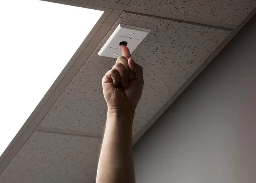 - Remote test switch/charge indicator module (included) fits in a single-gang box