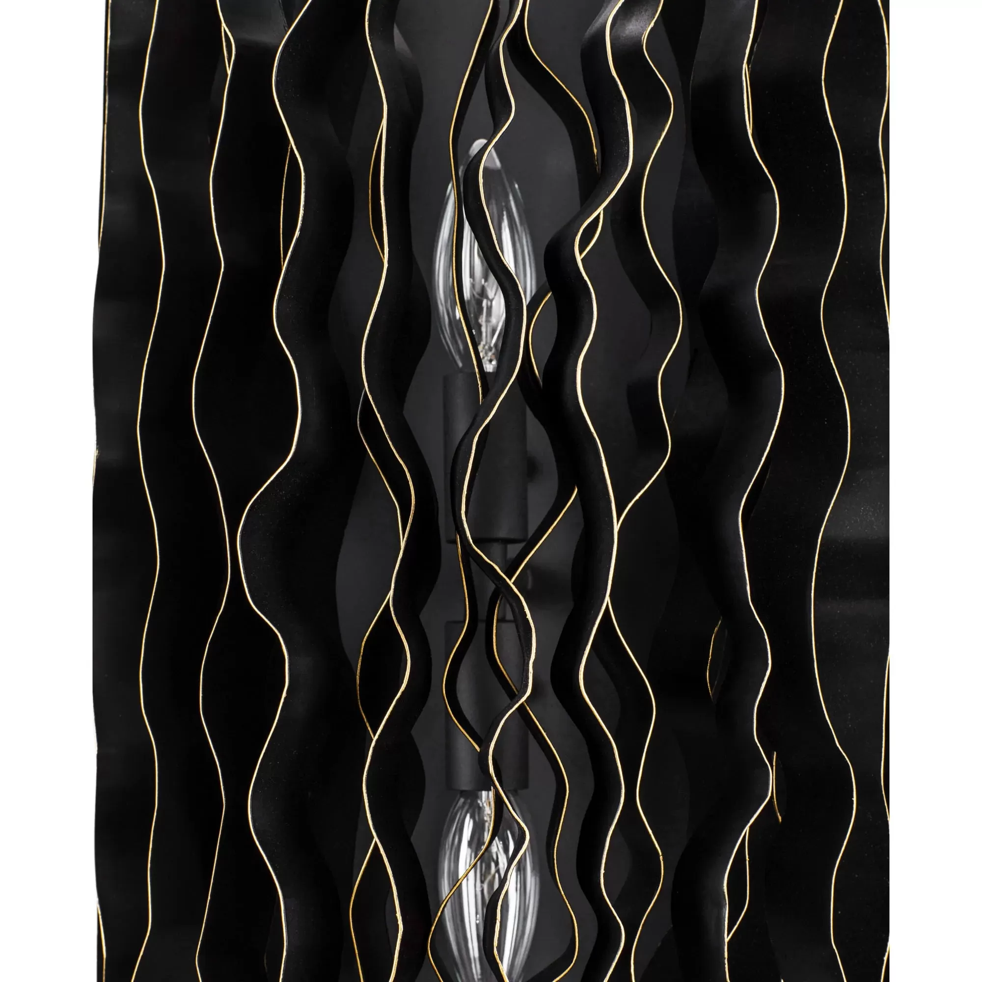 In their journeys through the Smithsonian Pollinator Garden, the designers at Varaluz reminisced about the many trails explored, both figuratively and literally. The word “estela” is a translation for the word “trail,” and this collection takes its inspiration from many of them and the nature surrounding them. Now all paths have converged in the Estela collection. We invite you to wander the cascading paths created by this new collection, where you’re sure to find your own path to enlightenment. For anyone looking for an inspired modern fixtures design, all trails lead to Varaluz. Estela features doubled up recycled wavy steel vanes finished in black with a slight gold edging inspired by the beauty of the Monarch butterfly.