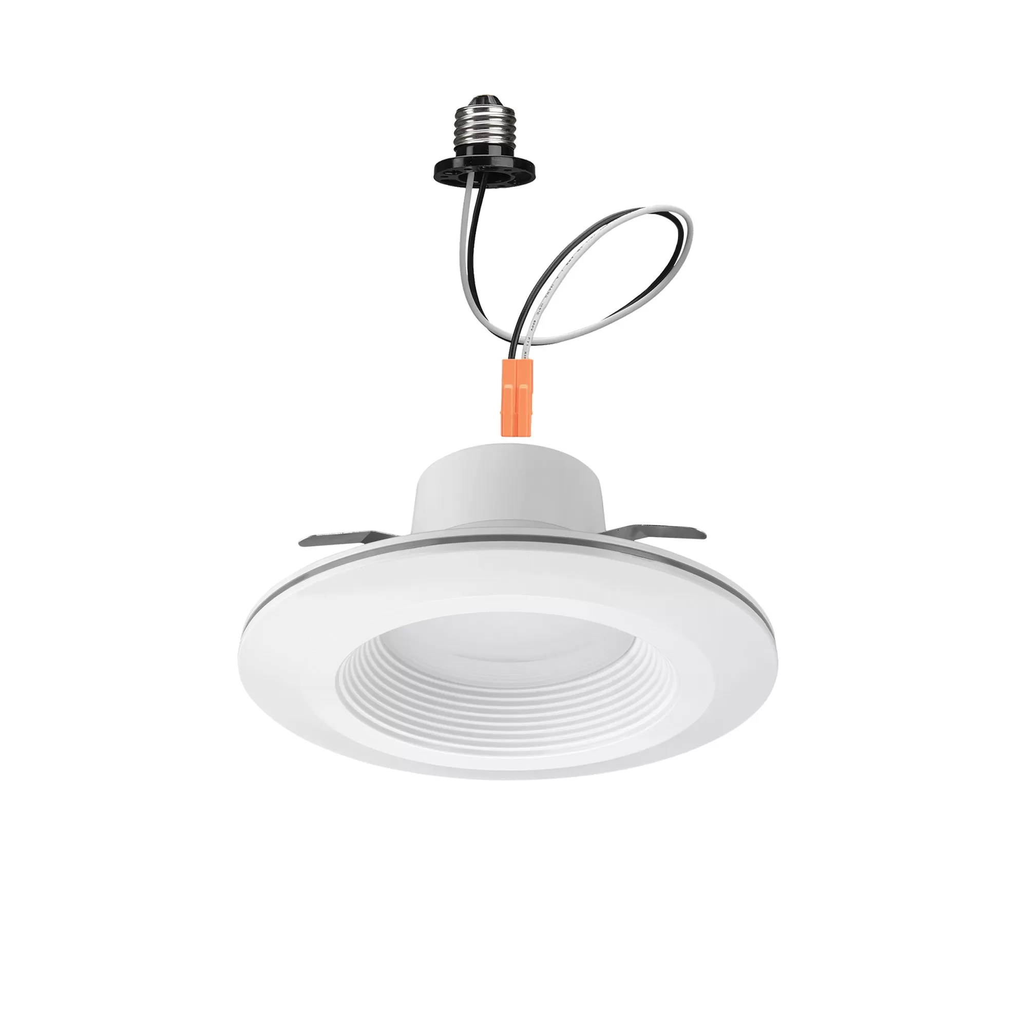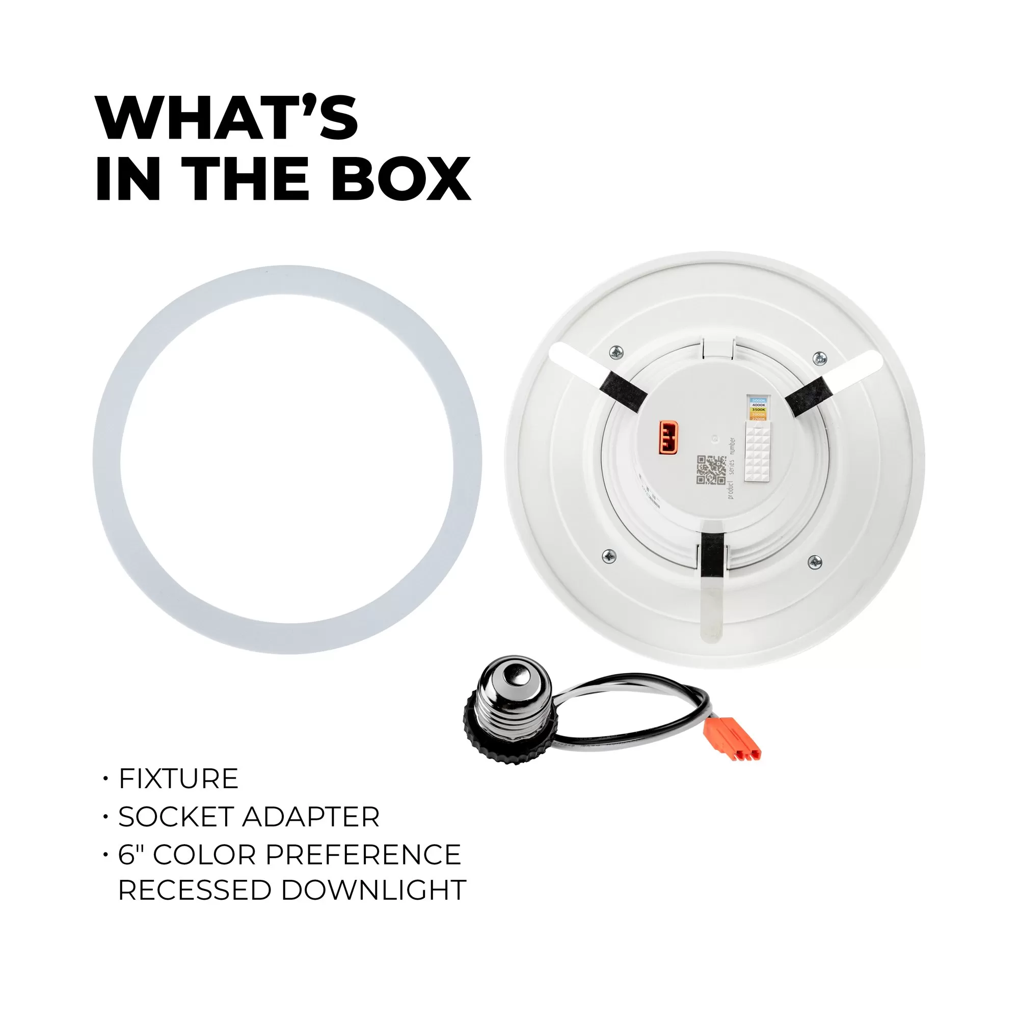 The ETi 6-inch Color Preference® downlight with nightlight trim is a baffled retrofit downlight. The Energy Star Certified fixture delivers 670 lumens, replacing a traditional 60-watt incandescent, consuming only 10 watts. The downlight has five color temperatures, 2700K, 3000K, 3500K, 4000K, and 5000K, selectable via a switch on the back of the light. Use the wall switch to change from the primary light to the 2000K NightlightR trim light, which delivers an ultra-warm ambient light on the ceiling around the fixture. Easily install the TRIAC dimmable fixture in existing recessed housings with the included E26 screw adapter.