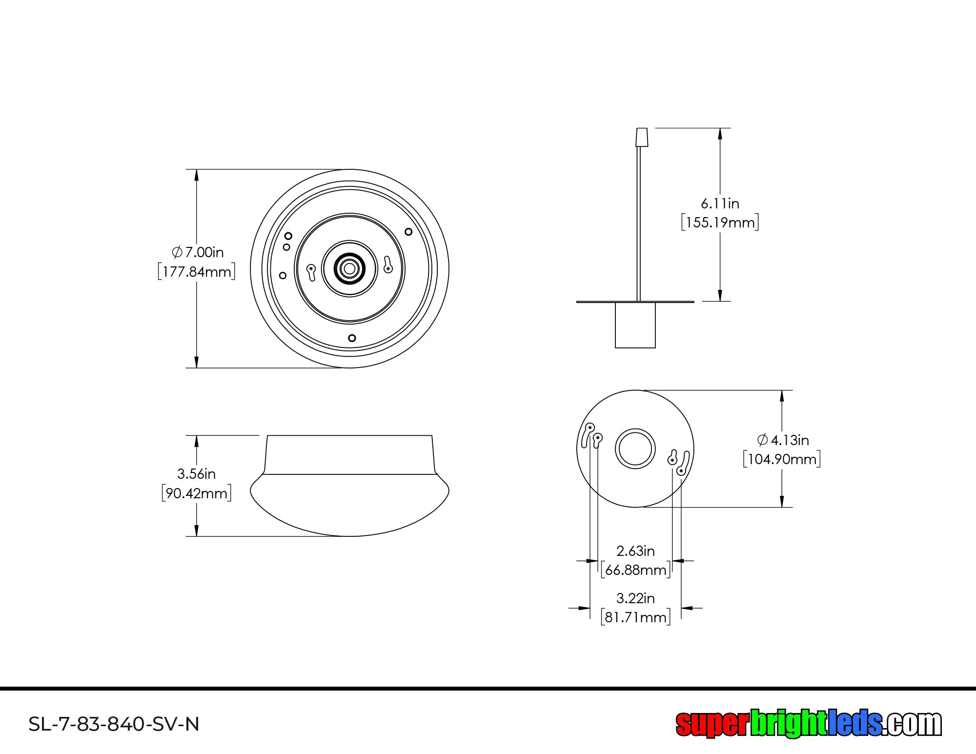 Use the ETi 7″ LED Spin Light® round downlight to upgrade your basic lamp holder to a modern, integrated LED fixture. Screw the E26 base into the holder like a standard lightbulb to transform your bare lamp holder into an Energy Star Certified fixture with no wiring required! It has a warm white 4000K CCT and delivers 830 lumens at 11.5 watts, replacing a traditional 60-watt incandescent. The downlight includes a SPEEDMOUNT® bracket for junction box installation in remodeling and new construction installations.