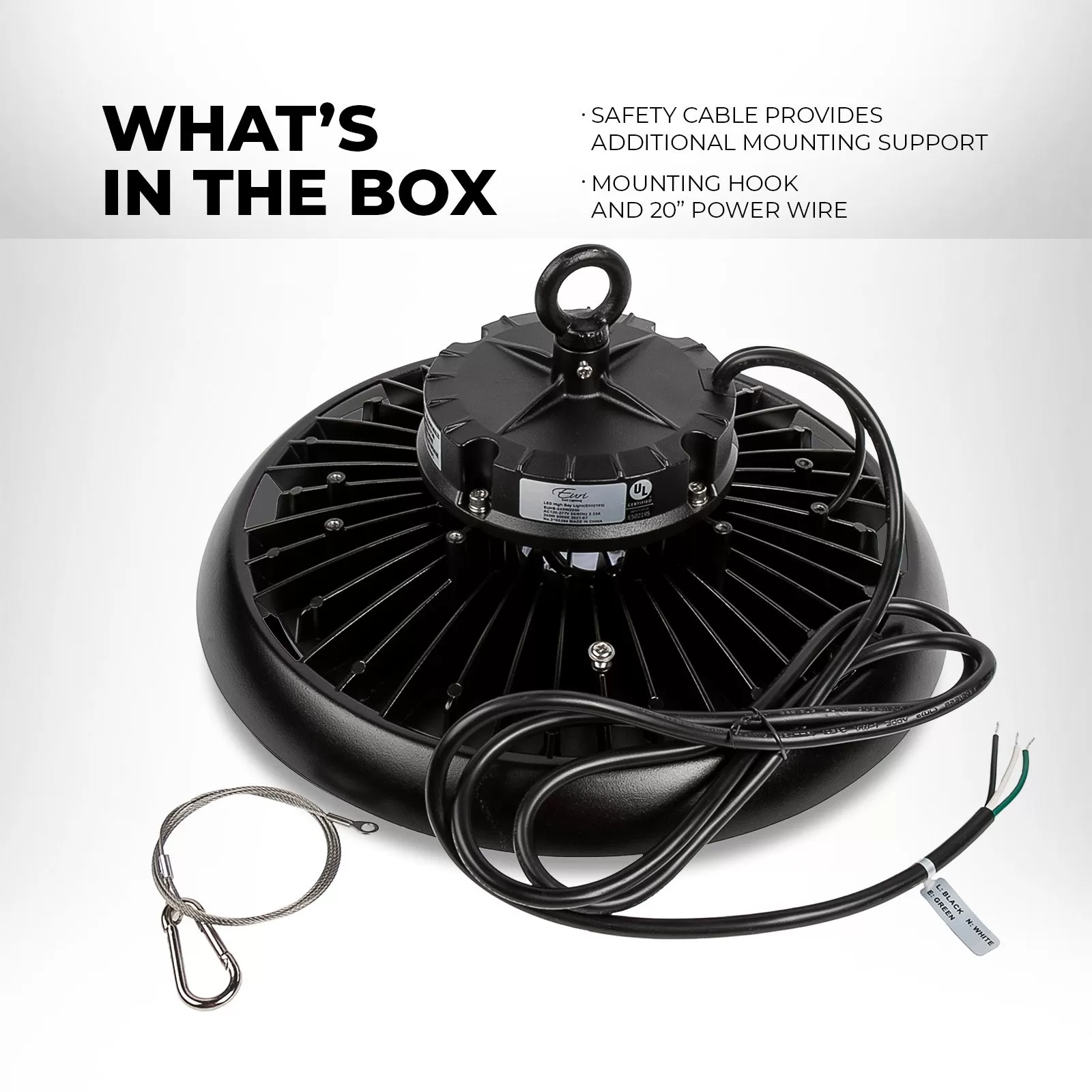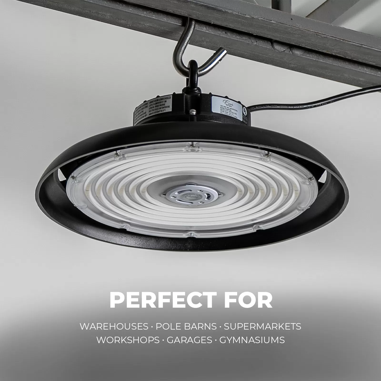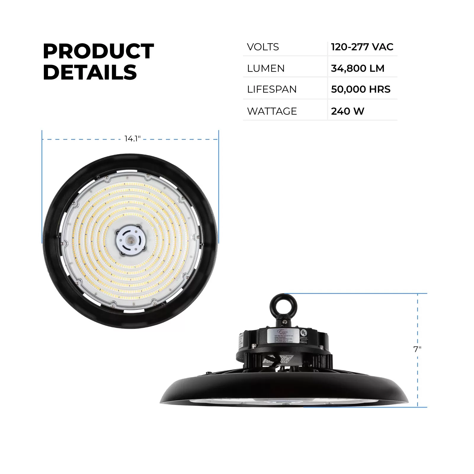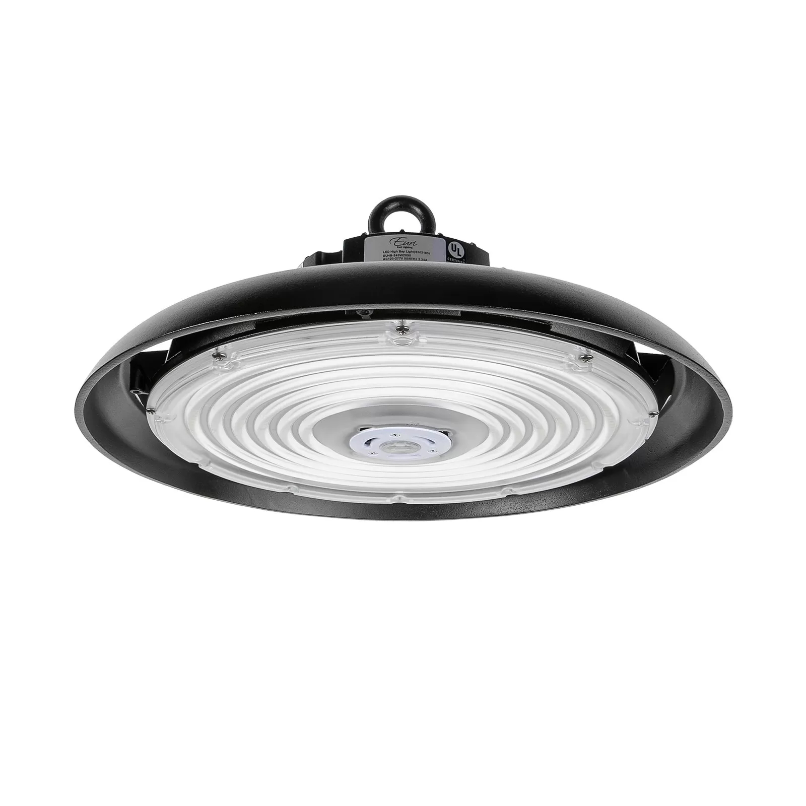 The Euri Lighting 240W UFO LED high bay light uses high-efficiency LED technology to replace traditional metal-halide fixtures. The low-profile UFO high bay fixture gives 34,800 lumens with excellent 145 lumens per watt efficacy. Adjust the brightness over your space and save energy with a standard 1-10V dimmer. Use an optional motion sensor for automatic activation and added energy savings.