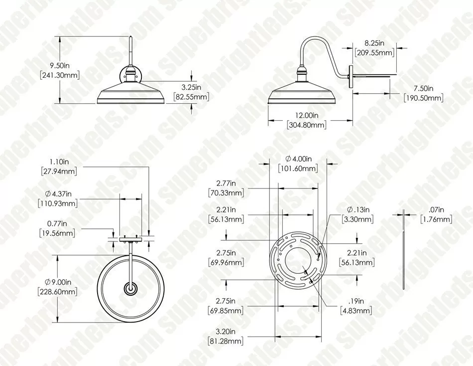 9″ LED Gooseneck Barn Lights have a classic silhouette made to compliment both traditional and modern aesthetics, indoors or out. Timeless gooseneck design adds architectural appeal to restaurants, storefronts, patios, and more. Industrial style shade directs a wide, downward beam of energy-efficient light for entryways, garages, and perimeters. Integrated LEDs are sealed against debris, bugs, and moisture; also eliminating bulb replacements. Powder coated steel construction gives a clean finish while protecting against harsh weather conditions.
