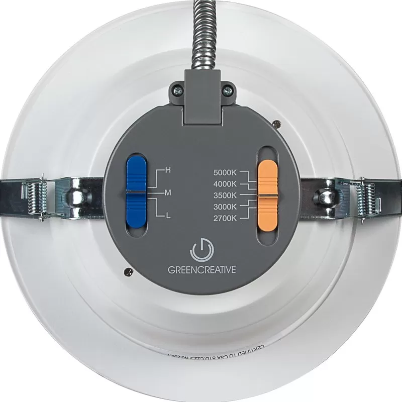 The 9.5″ SelectFIT G2 LED Downlight by Green Creative features five color temperatures, three wattages, and dual-dimming operation. Using the switches on the top of the fixture, select the wattage and color temperature that best suit the application. The recessed downlight also has 0-10V and TRIAC dimming, ensuring the downlight is ideal for any installation. SLFT9.5-9CCT5S-DUALDIM has a deep recessed lightsoursce that reduces glare and provides 80° of uniform light.