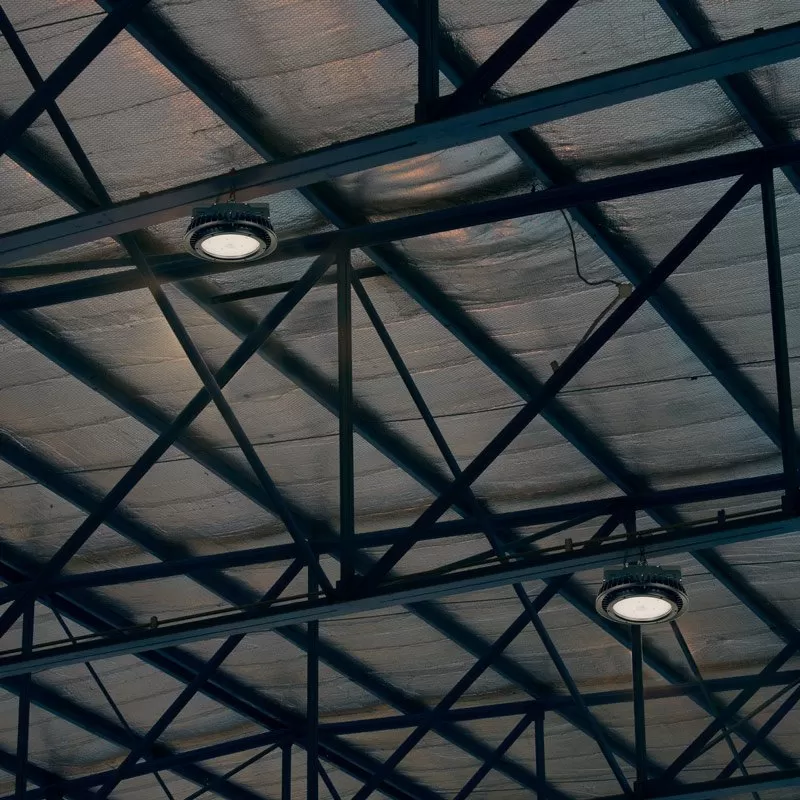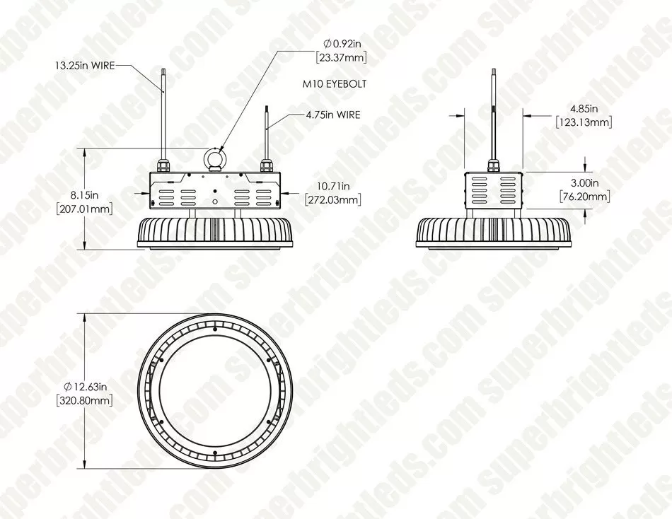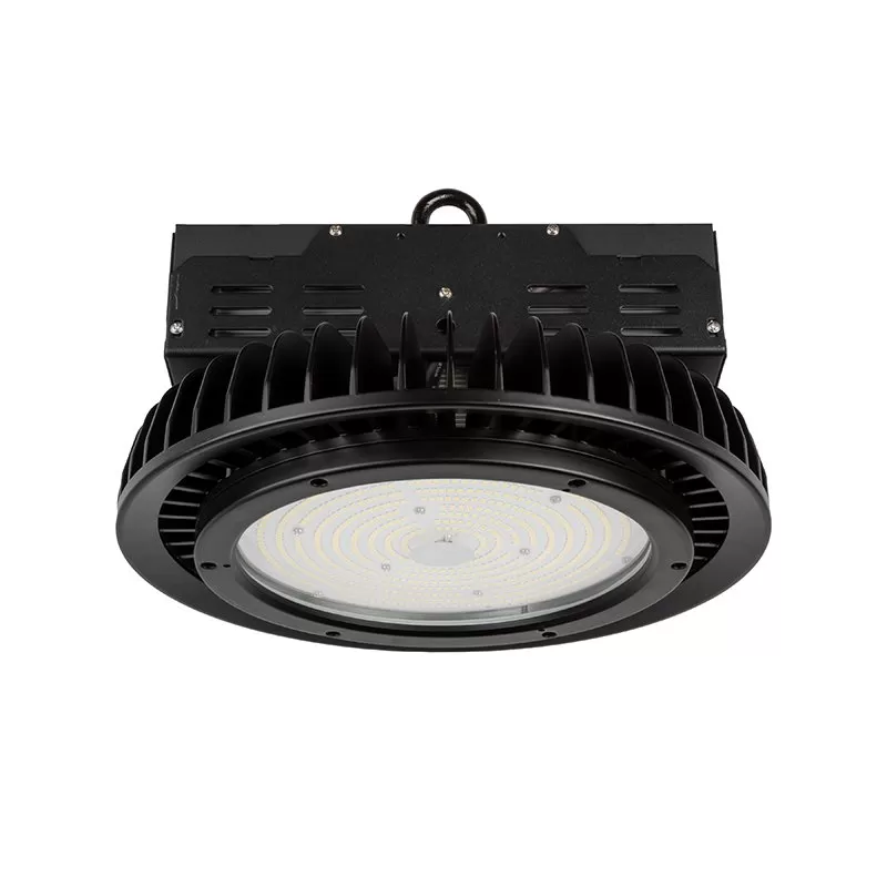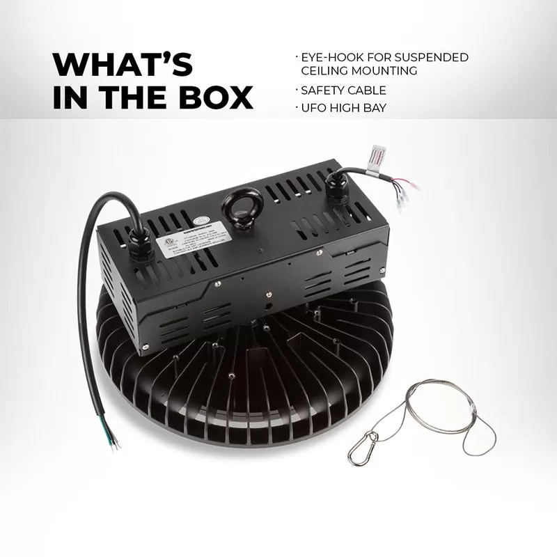 The round high-voltage LED high bay is designed to lower maintenance costs by replacing traditional metal halide fixtures. The high bay is constructed with a powder-coated aluminum housing and polycarbonate lens. Built to resist water and dust, the UFO high bay has a waterproof IP65 rating. Install the fixture using the included stainless steel eye hook or use a compatible adjustable U-bracket (sold separately).