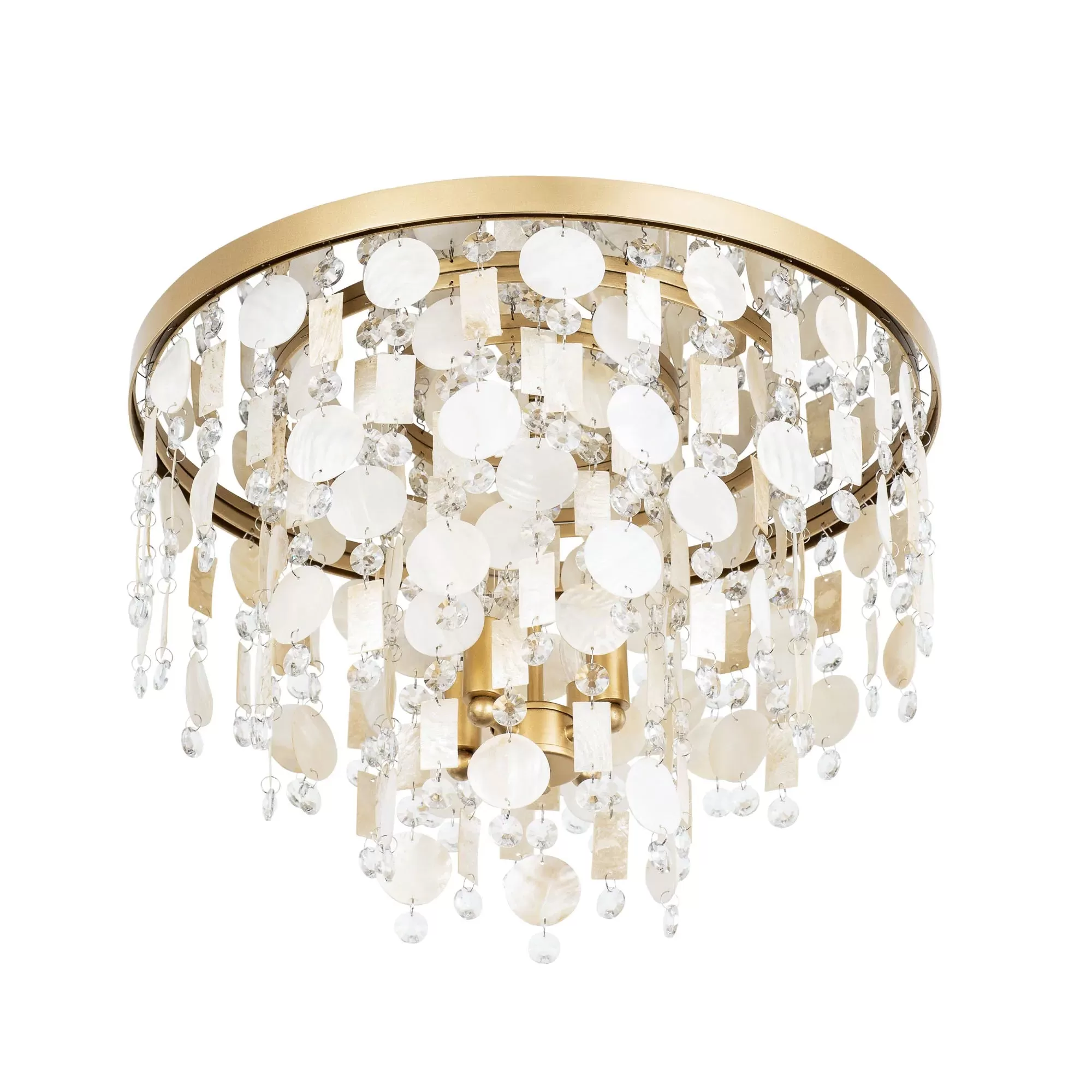 Hand-forged from 70% Recycled Steel. Embellished with Caramel Capiz, Upcycled Kabebe Shell and Lead-Free Crystal. Low-VOC French Gold Finish.