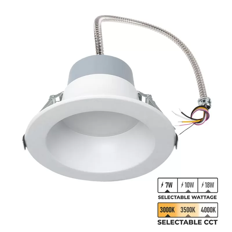 The LED 6” Commercial Downlight by Euri Lighting features selectable CCT and wattage, providing nine fixtures in one. Using the buttons on the top of the fixture select the wattage and color temperature that works best based on the application setting. This downlight is ideal for new constructions, remodels, and retrofitting applications. It delivers up to 1,728 lumens of glare-free uniform light distribution. Its 90+ CRI provides high-quality color rendering, making it ideal for commercial use in retail spaces, hospitals, and offices.