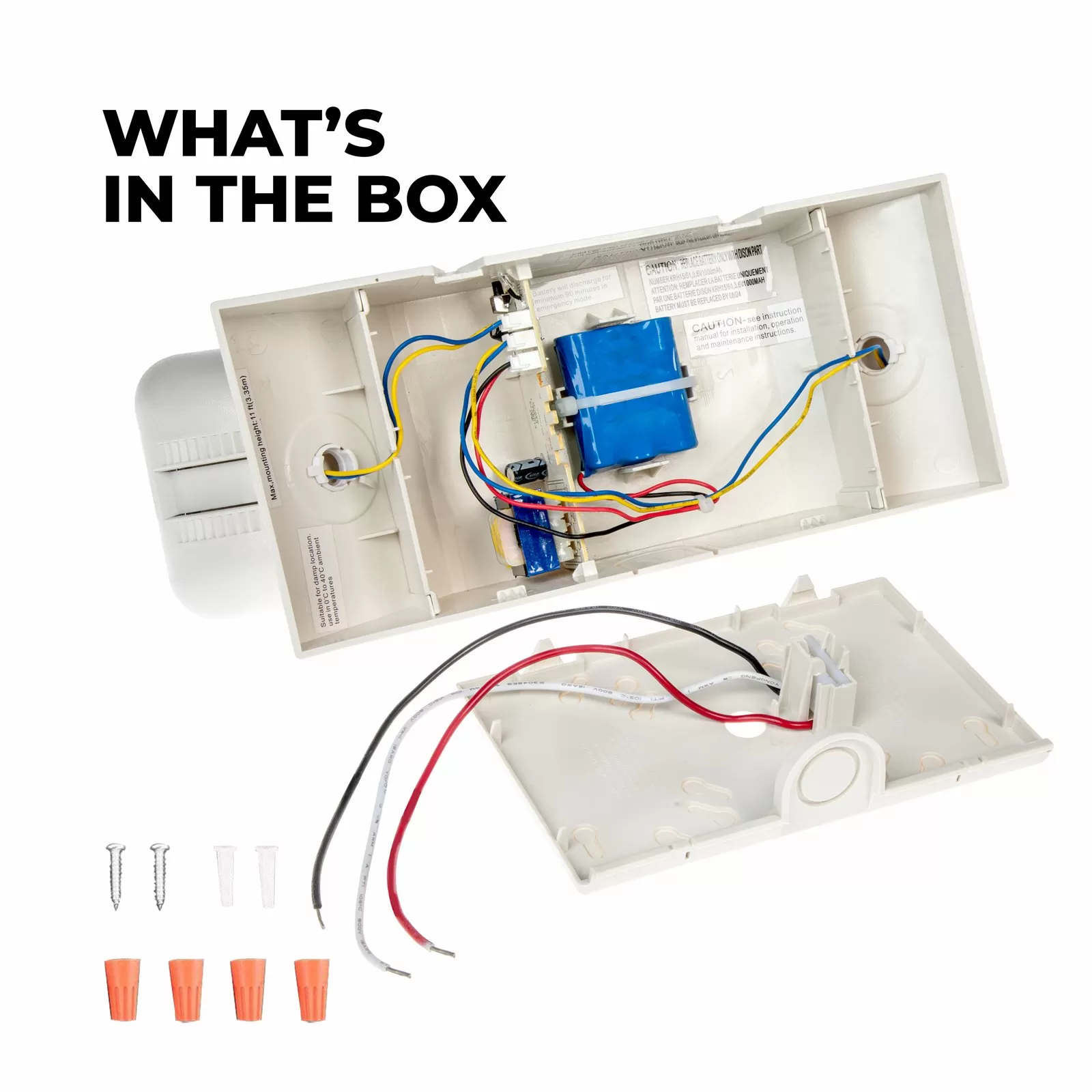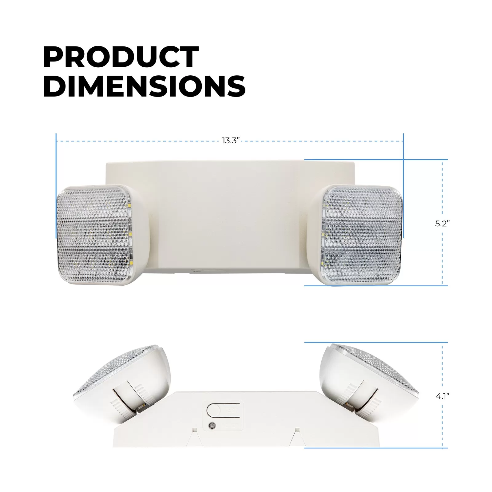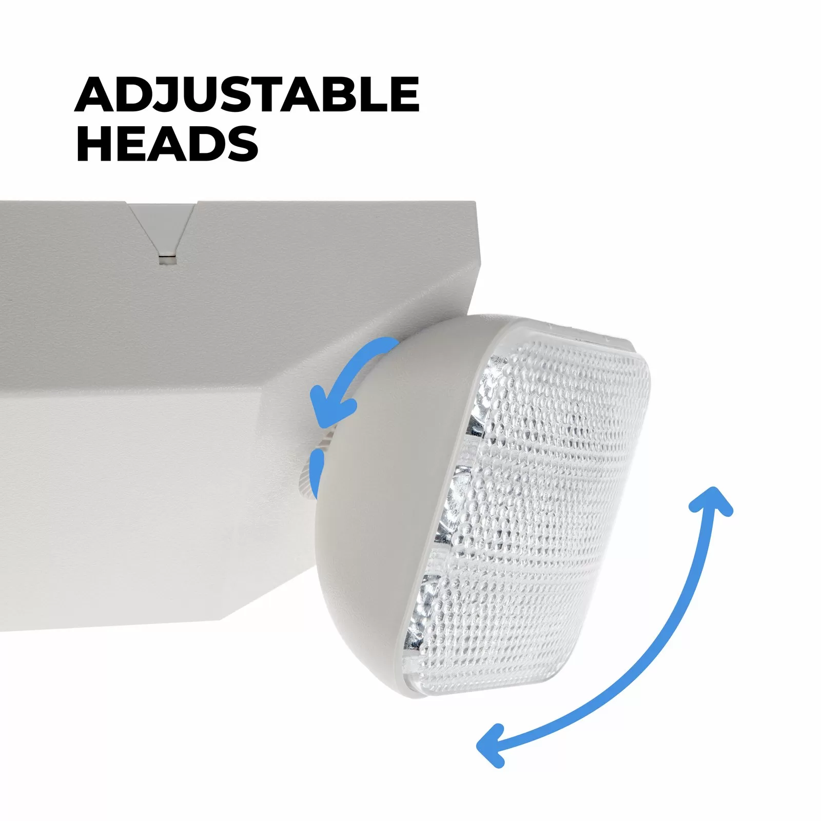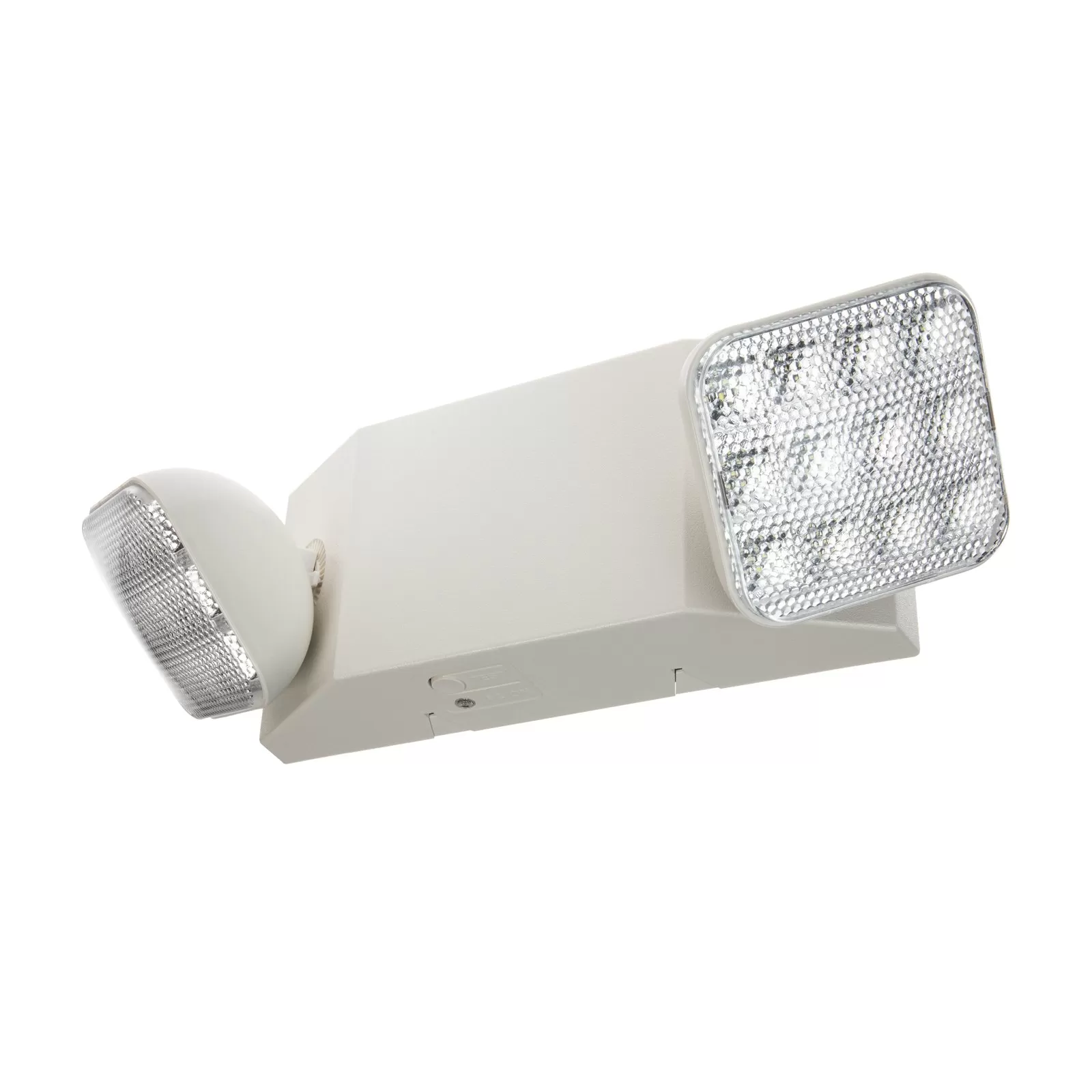 In the event of a power failure, the LED emergency light will switch on for increased safety and security. The integrated Ni-Cd battery provides 90+ minutes of lighting on a 24-hour charge. The fixture is constructed with a durable white ABS thermoplastic housing and two adjustable-position light heads. Mount the emergency light on the wall or ceiling – best installed along pathways inside schools, stairwells, or industrial buildings.
