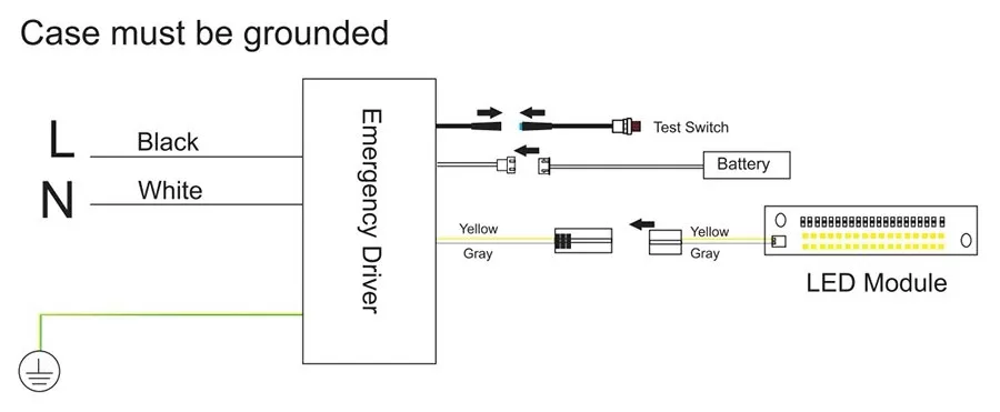 - Includes constant wattage emergency driver, battery, LED module and charging indicator light