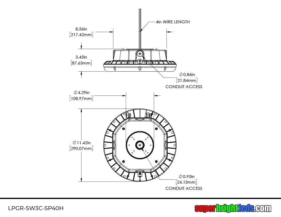 - Surface mount or pendant mount with 3/4” conduit entry point