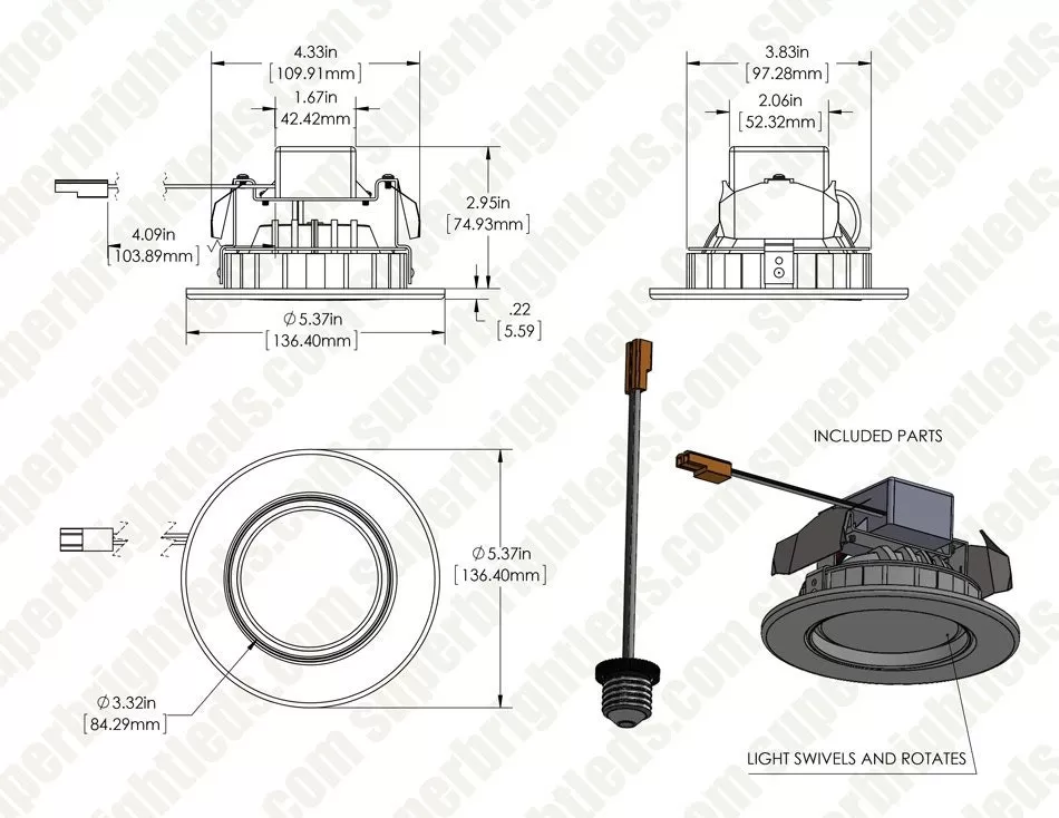 The LED recessed lighting kit for 4” cans with gimbal trim allows the light to pivot and rotate for 670 lumens of directional natural 4000K illumination. These downlights are designed for residential and commercial ceiling lighting and are ideal for retrofit or new construction for kitchen, bathroom, living room, basement, office lighting, and more. A high CRI (color-rendering index) of 92 delivers accurate color representation. The fixture is TRIAC dimmable and includes an E26/E27 Edison screw base adapter for installation.