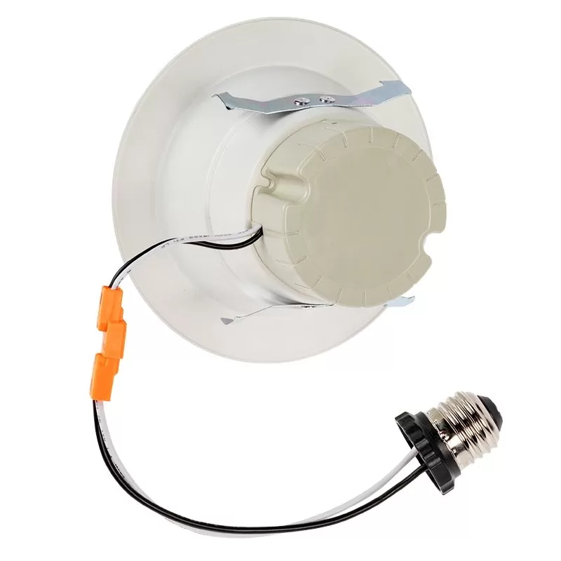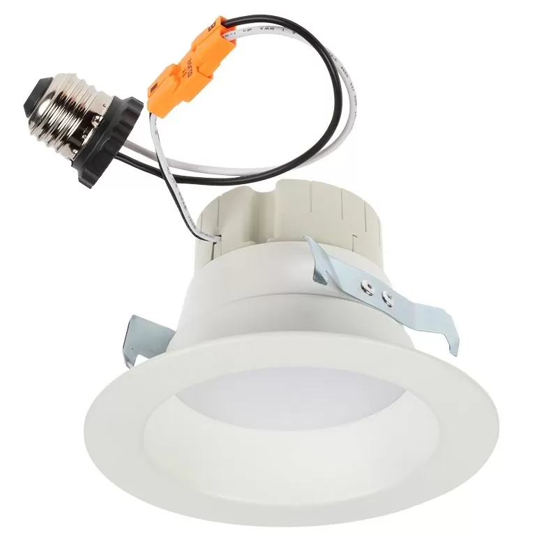 DLxD series Recessed Lighting Kit is a convenient solution for both residential and commercial downlight ceilings. Suitable for both retrofit/remodel projects or new construction. The fixture is equipped with an E26/27 screw base adapter and a quick link connector for simple installation in 4″ standard recessed housings. Friction clips hold the fixture securely to the ceiling, while white baffle trim provides a clean finish for interior spaces. Textured lens creates smooth, glare-free light diffusion ideal for general lighting applications.