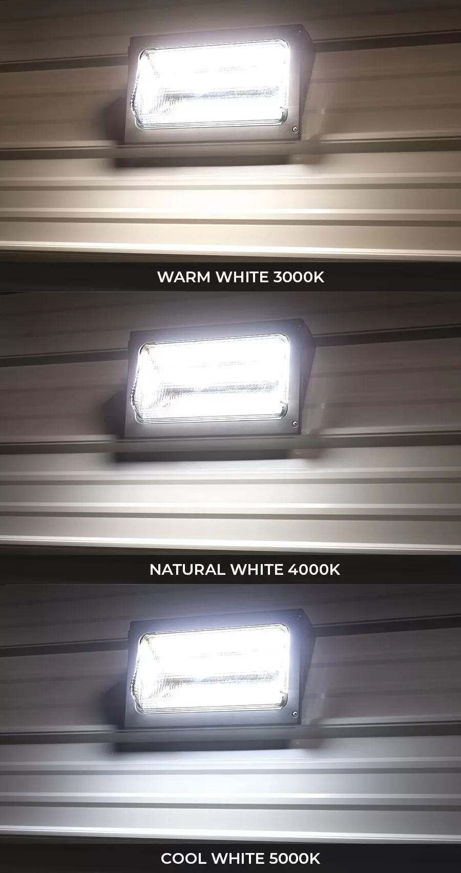 This LED wall pack features selectable CCT and wattage to customize the fixture to the application area. The integrated photocell simplifies operation and can be bypassed by unplugging it. The fixture is constructed of a bronze die-cast aluminum housing, a long-lasting glass lens, and is rated IP65 for outdoor installations. Traditional design directs light downward, decreasing wasted light. Wide beam distribution is ideal for parking lots, building exteriors, and warehouses.