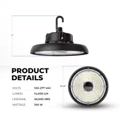 100W UFO LED High Bay Light - 14,000 Lumens - 250W MH Equivalent - 5000K