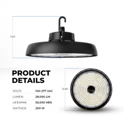 200W UFO LED High Bay – 28,000 Lumens – 750W MH Equivalent – 5000K