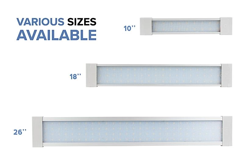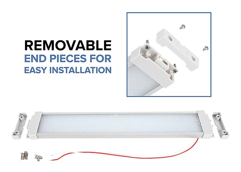 This linear LED light bar emits bright, smooth white light, ideal for both decorative and functional applications. Its sleek, slim design is perfect for installation in small or out-of-sight spaces. Available in 3 different lengths; 10”, 18”, or 26” and with either natural or warm light. Switch on/off with a convenient touch control. This fixture features removable end pieces for easy installation.