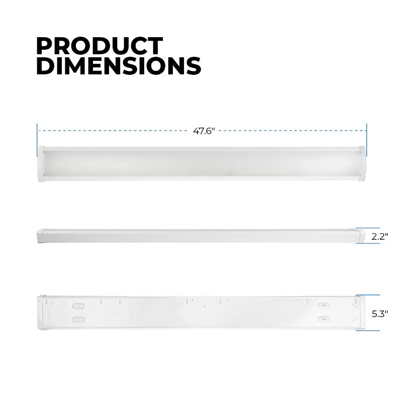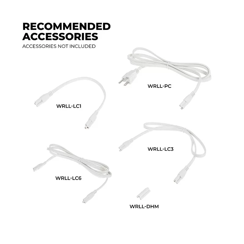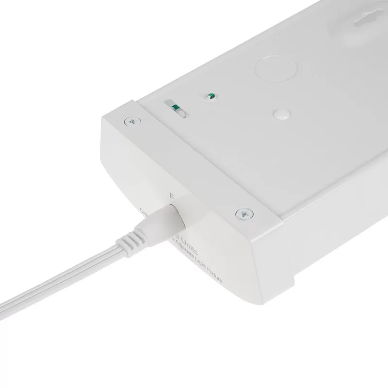 Replace outdated fluorescent wraparound lights using the linkable 4ft LED wraparound light fixture. The field-selectable wattage can replace fluorescent fixtures using up to three 4-foot 32W T8 tubes. Using the switches on the internal driver, select the desired wattage and color temperature for the application setting. A curved PMMA lens diffuses the light beam creating 110° of even and glare-free light. Link up to 8 fixtures together using optional 1′, 3′, and 6′ interconnects, powering with the required power cord. Ideal for commercial and residential applications such as offices, schools, and garages.