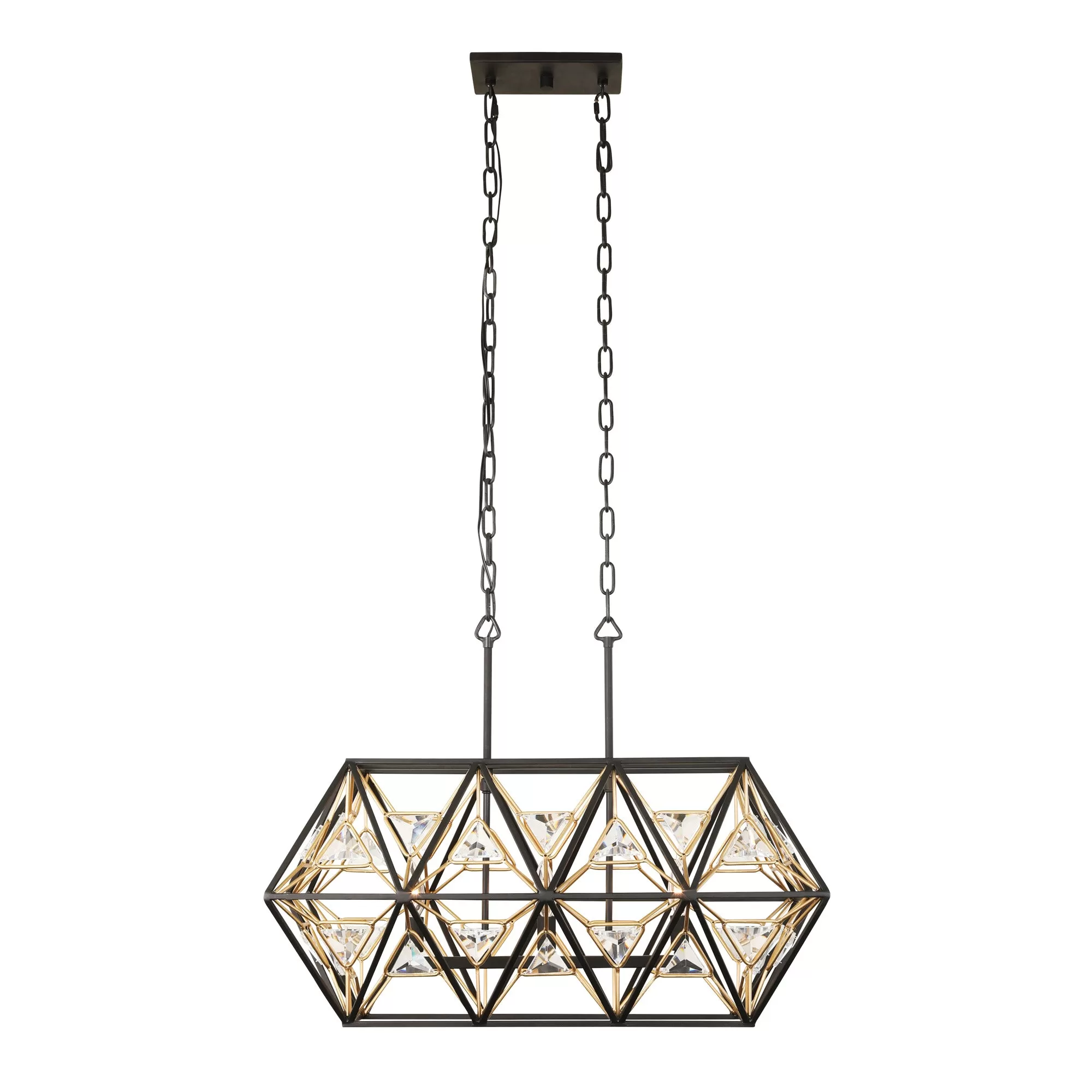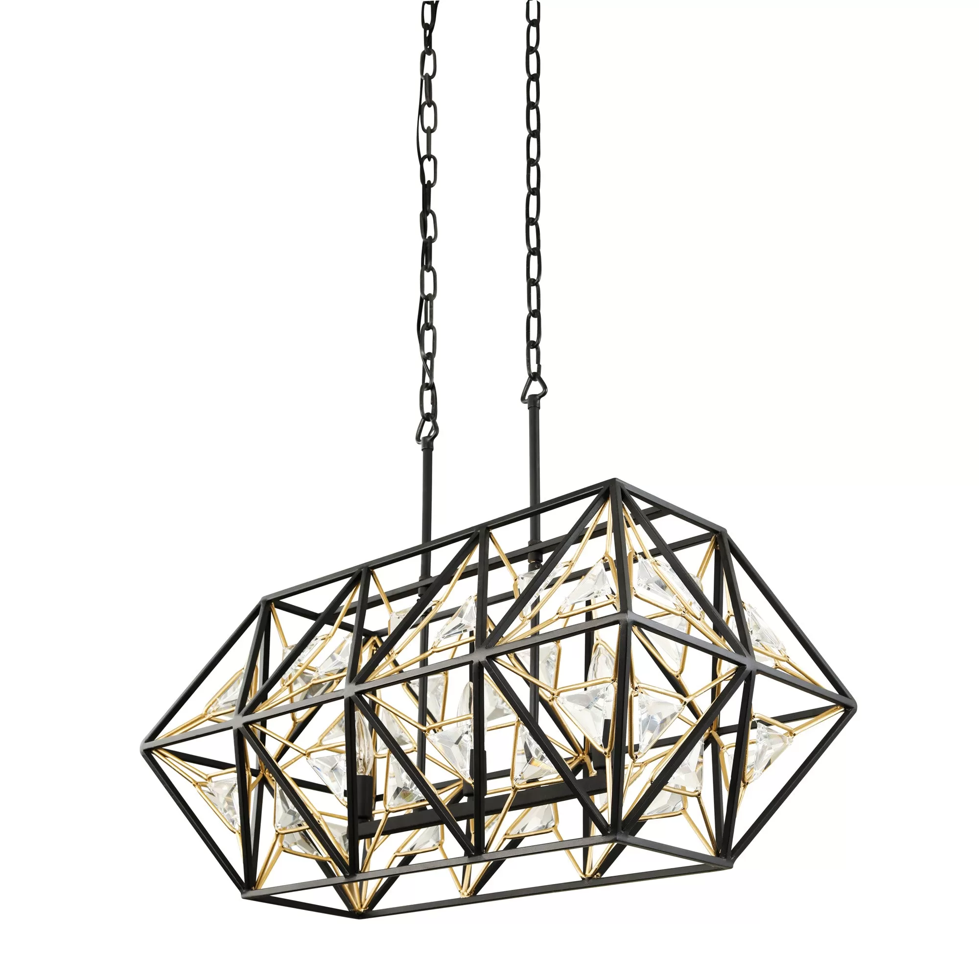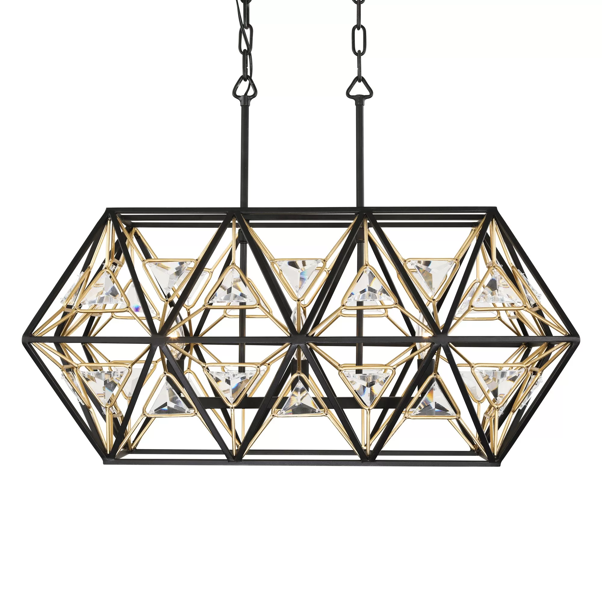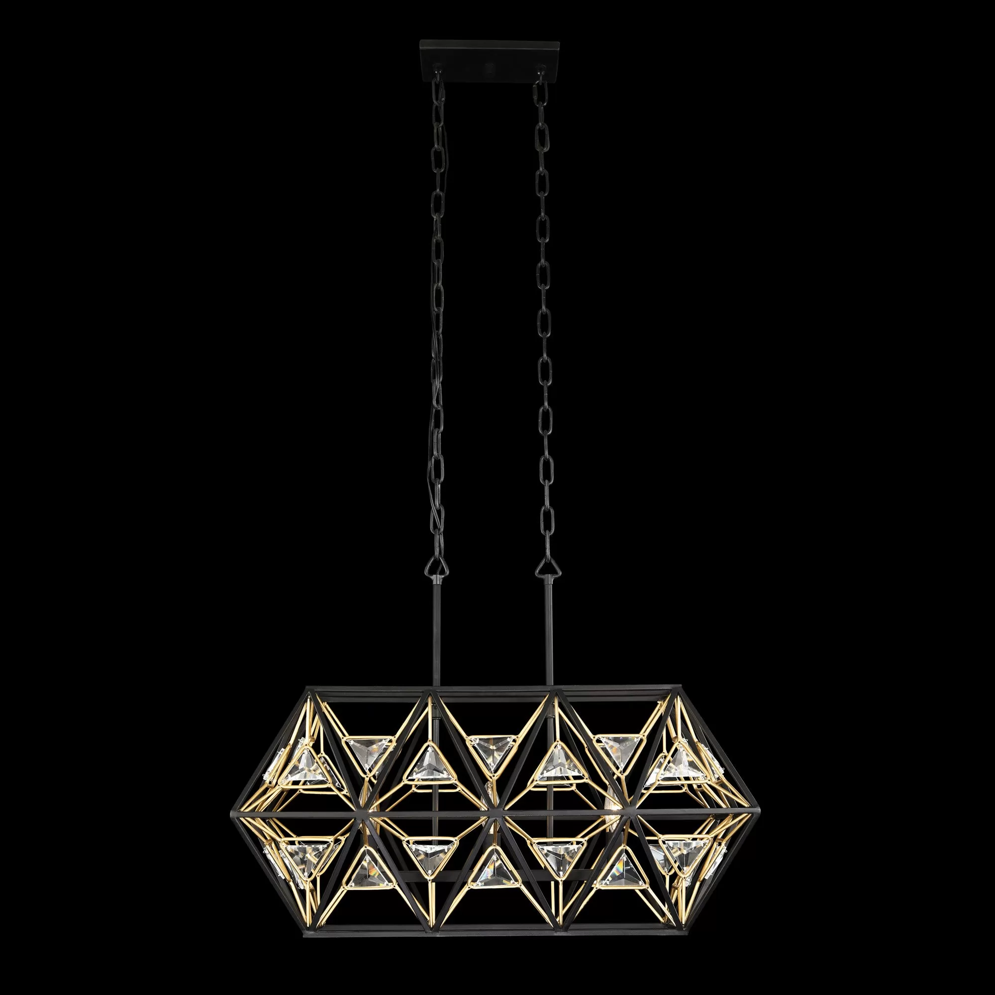 Intricate Geometric Metal Work. Custom Triangular Crystal. Matte Black and French Gold Finish