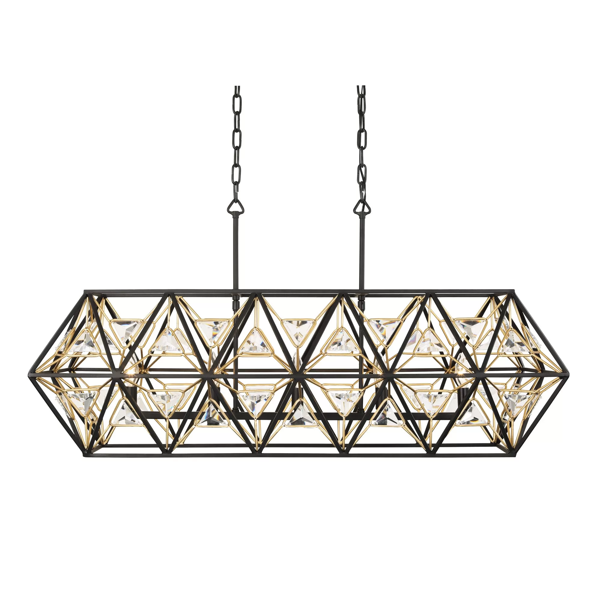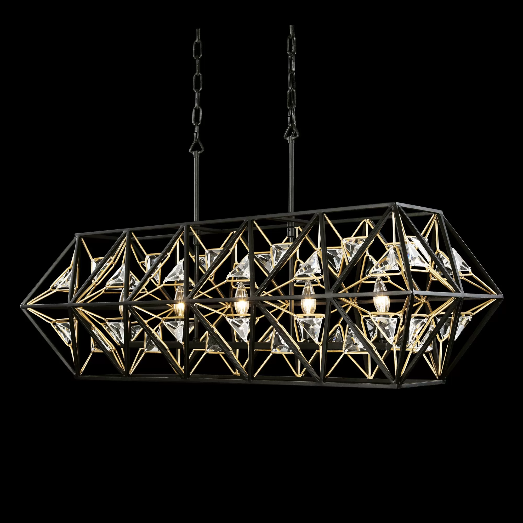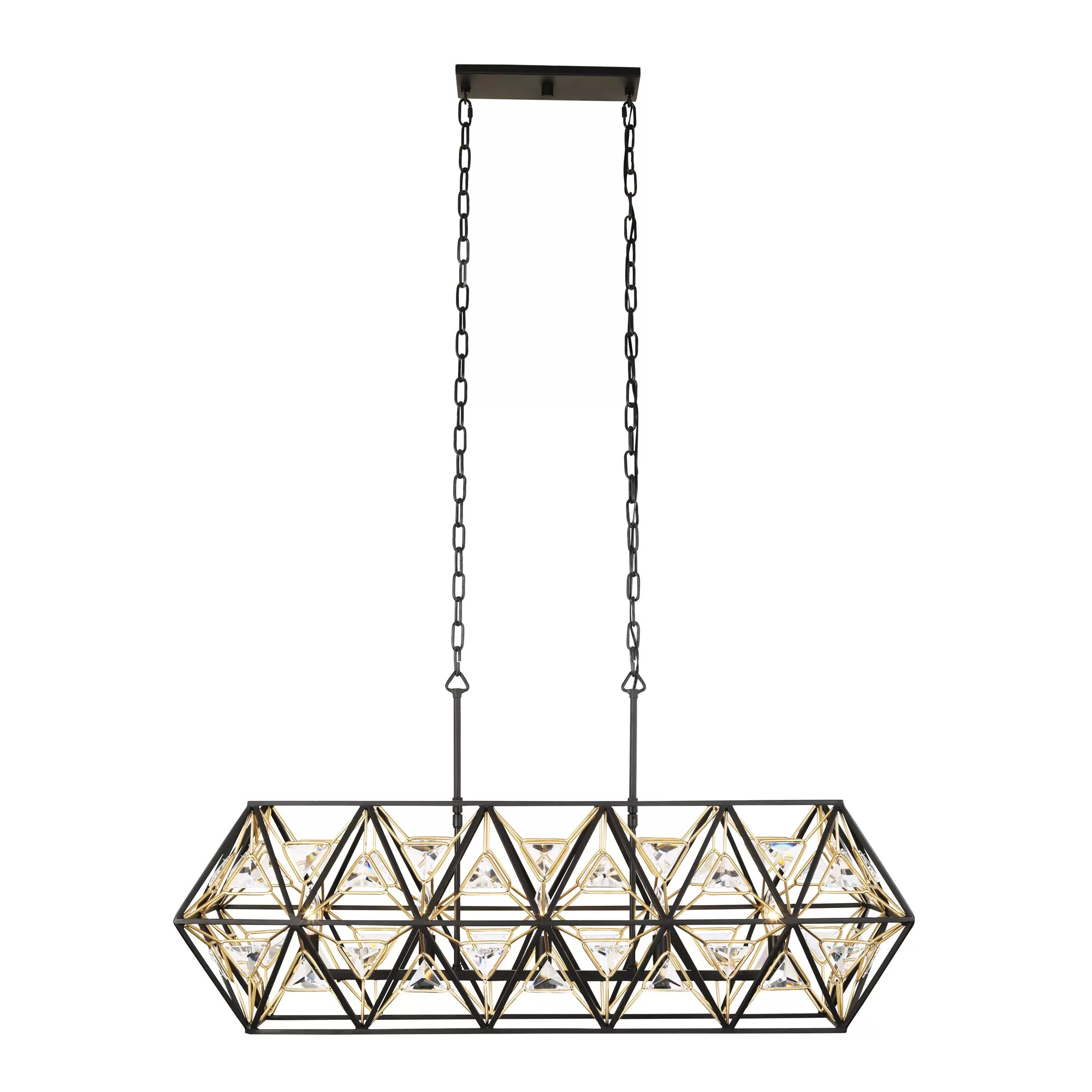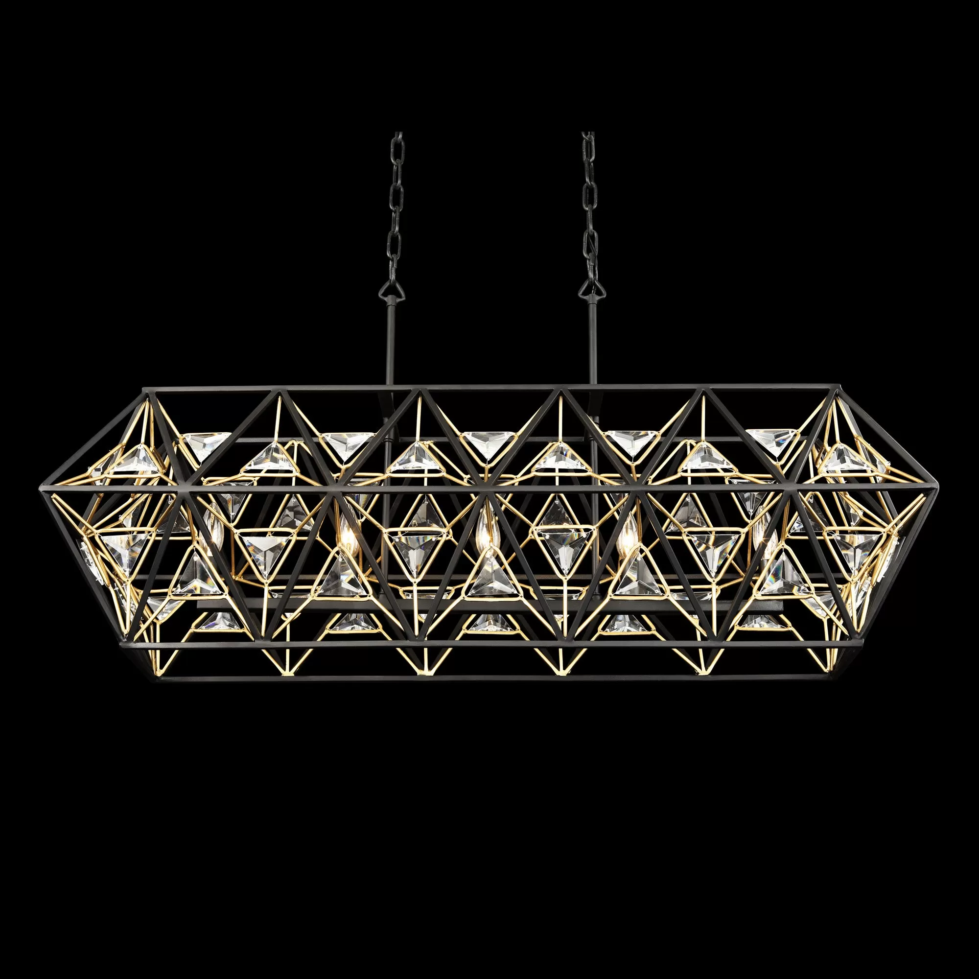 Intricate Geometric Metal Work. Custom Triangular Crystal. Matte Black and French Gold Finish