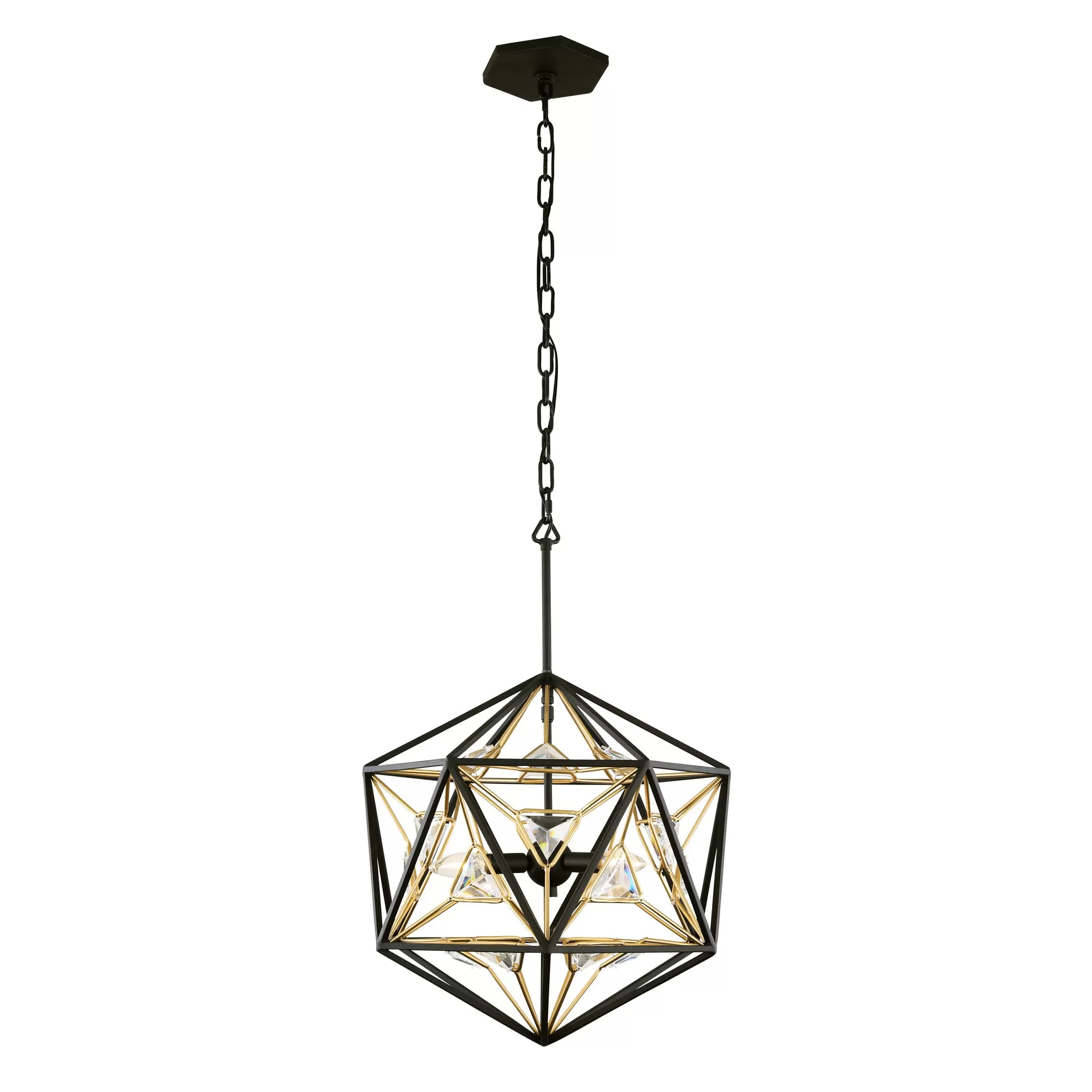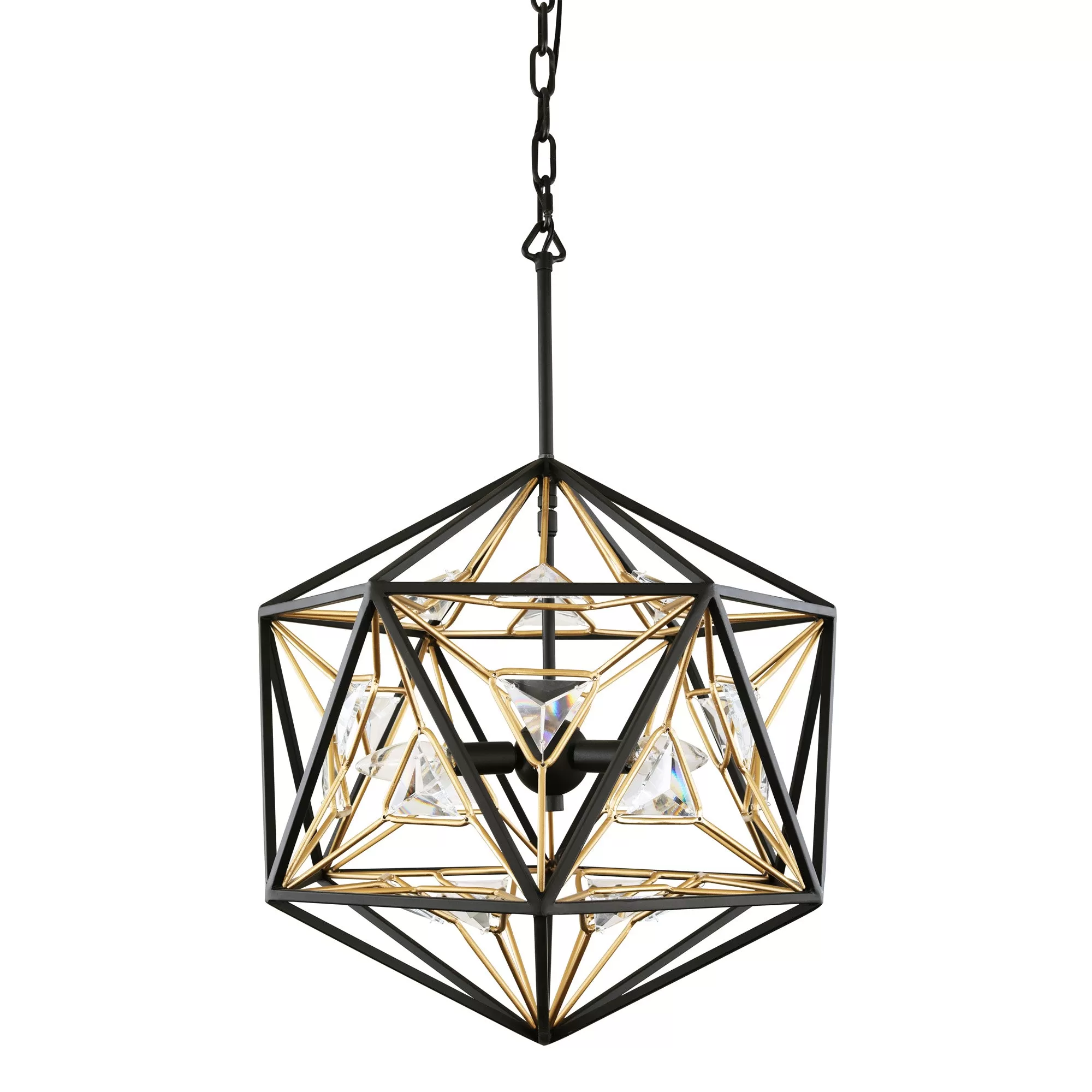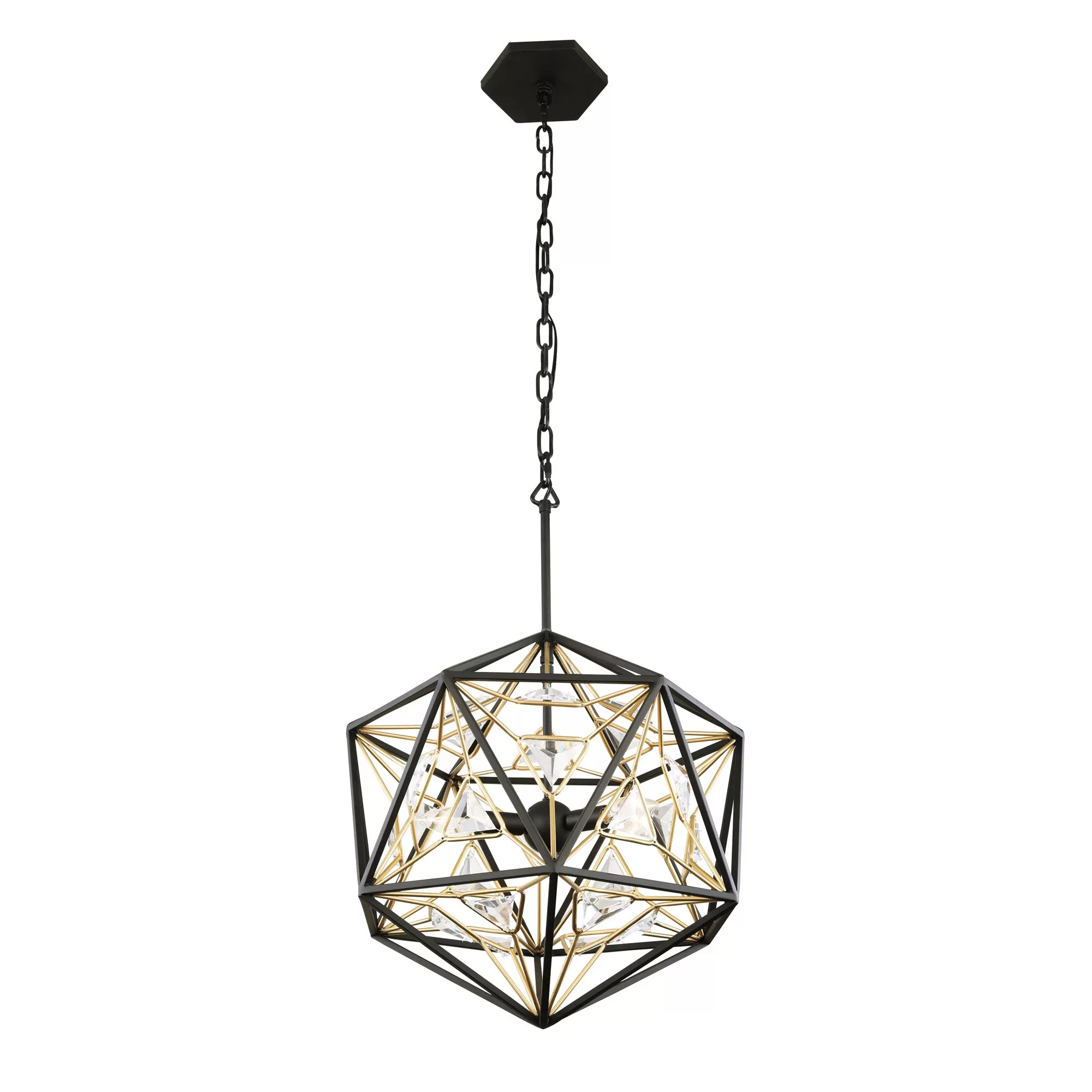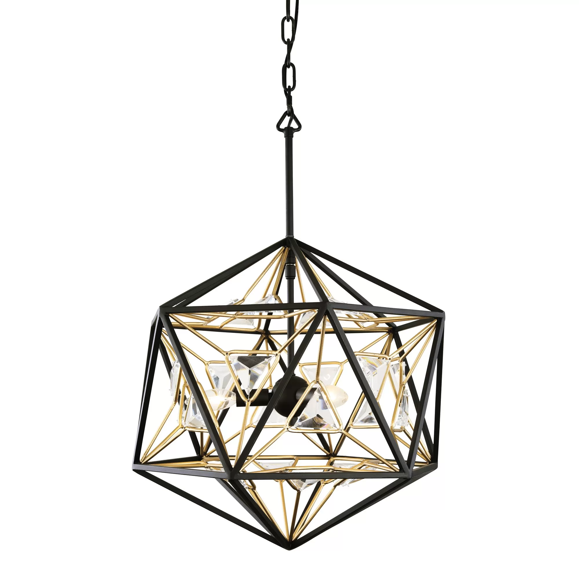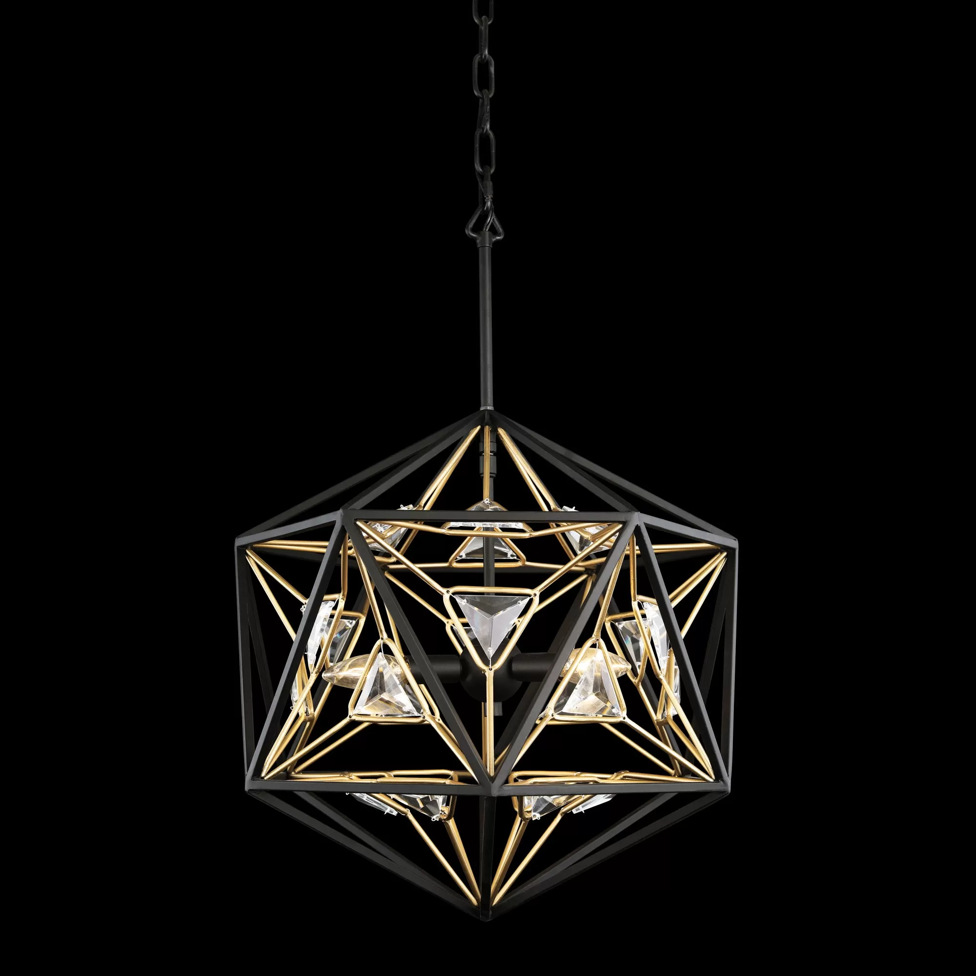 Intricate Geometric Metal Work. Custom Triangular Crystal. Matte Black and French Gold Finish