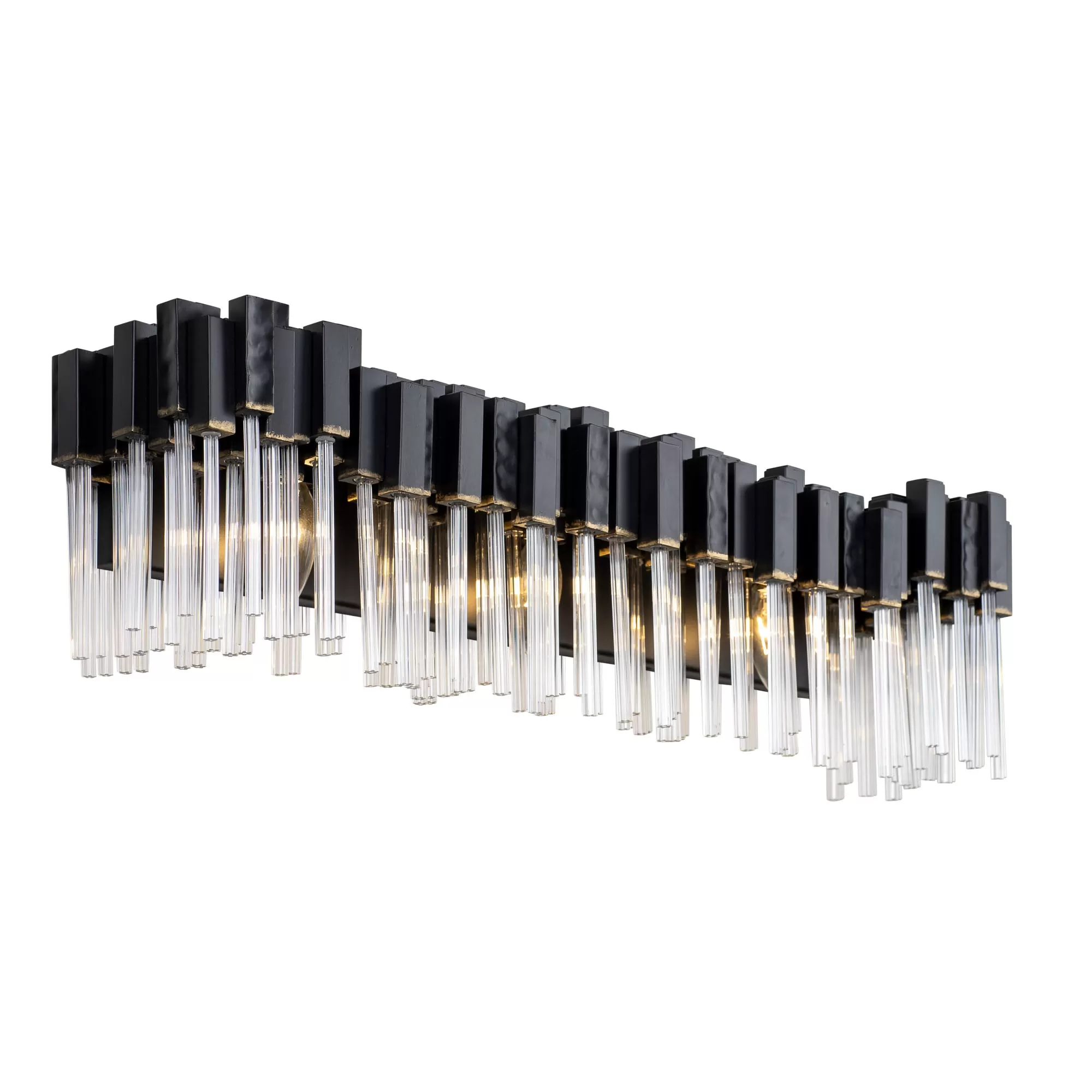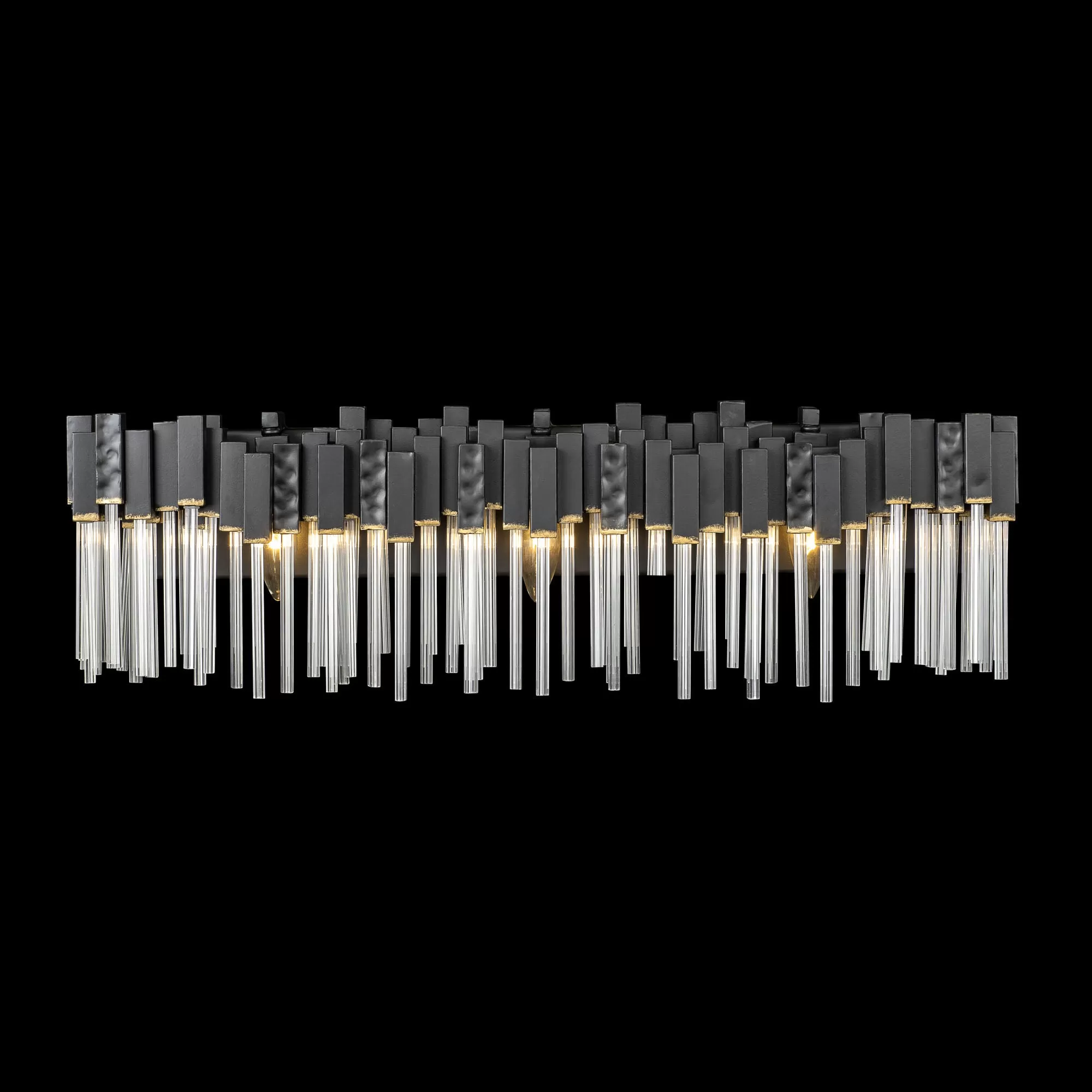 Hand Forged Recycled Steel. Handsomely Hammered Elements. Fluted 70’S Inspired Clear Glass Rods.