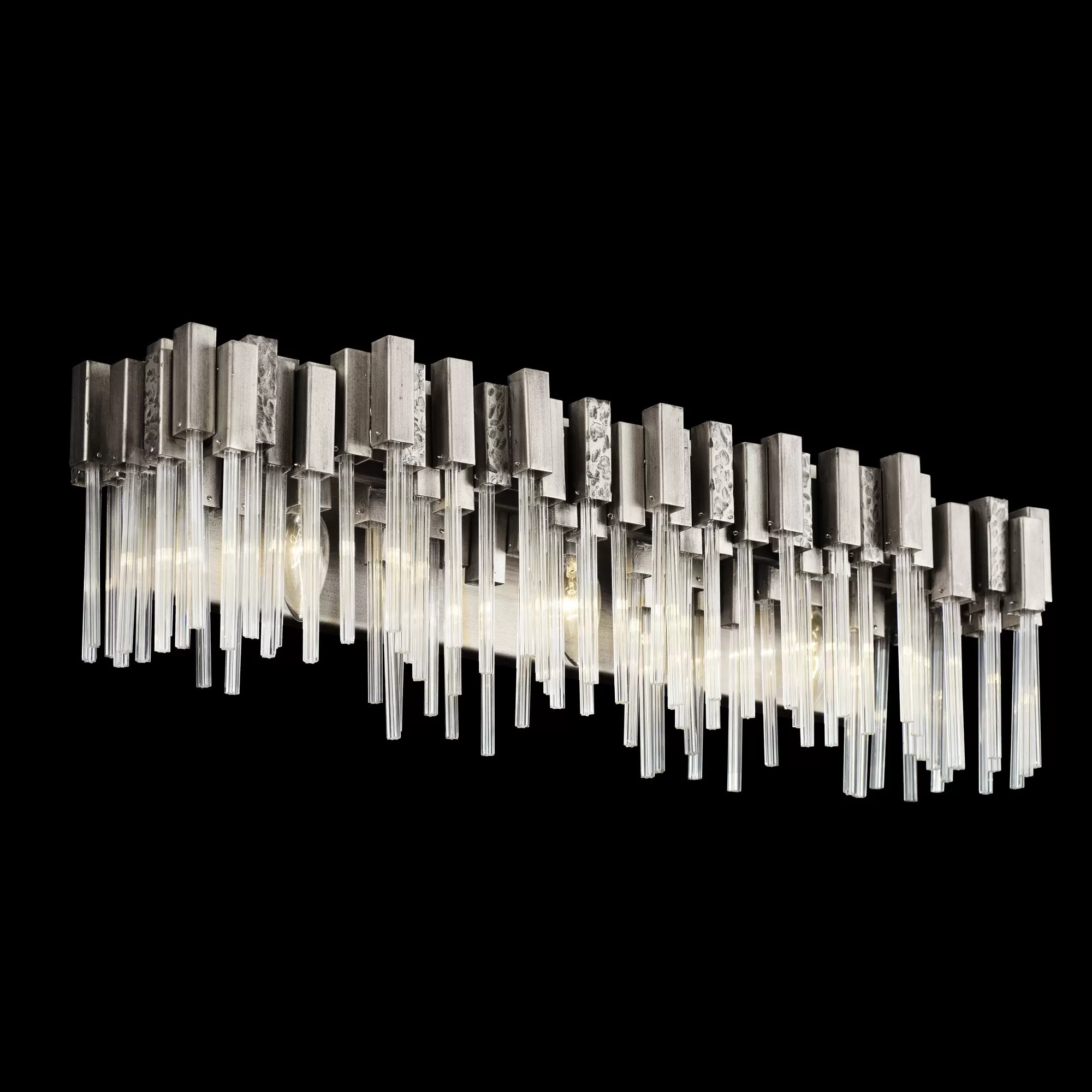 Hand Forged Recycled Steel. Handsomely Hammered Elements. Fluted 70’S Inspired Clear Glass Rods.