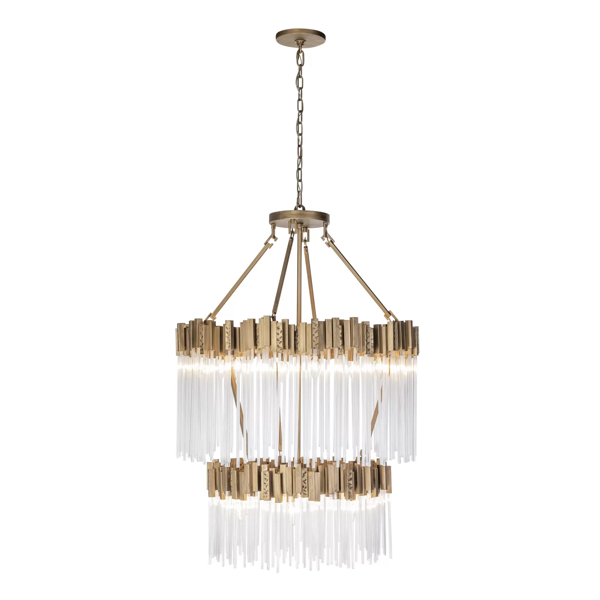 Hand Forged Recycled Steel. Handsomely Hammered Elements. Fluted 70’S Inspired Clear Glass Rods.