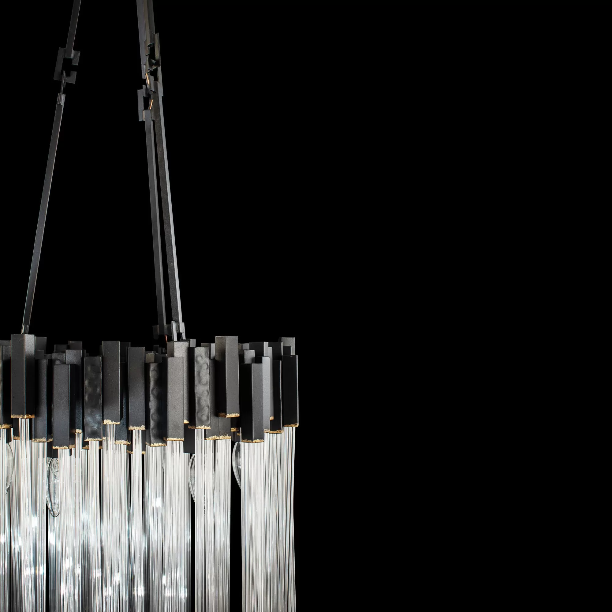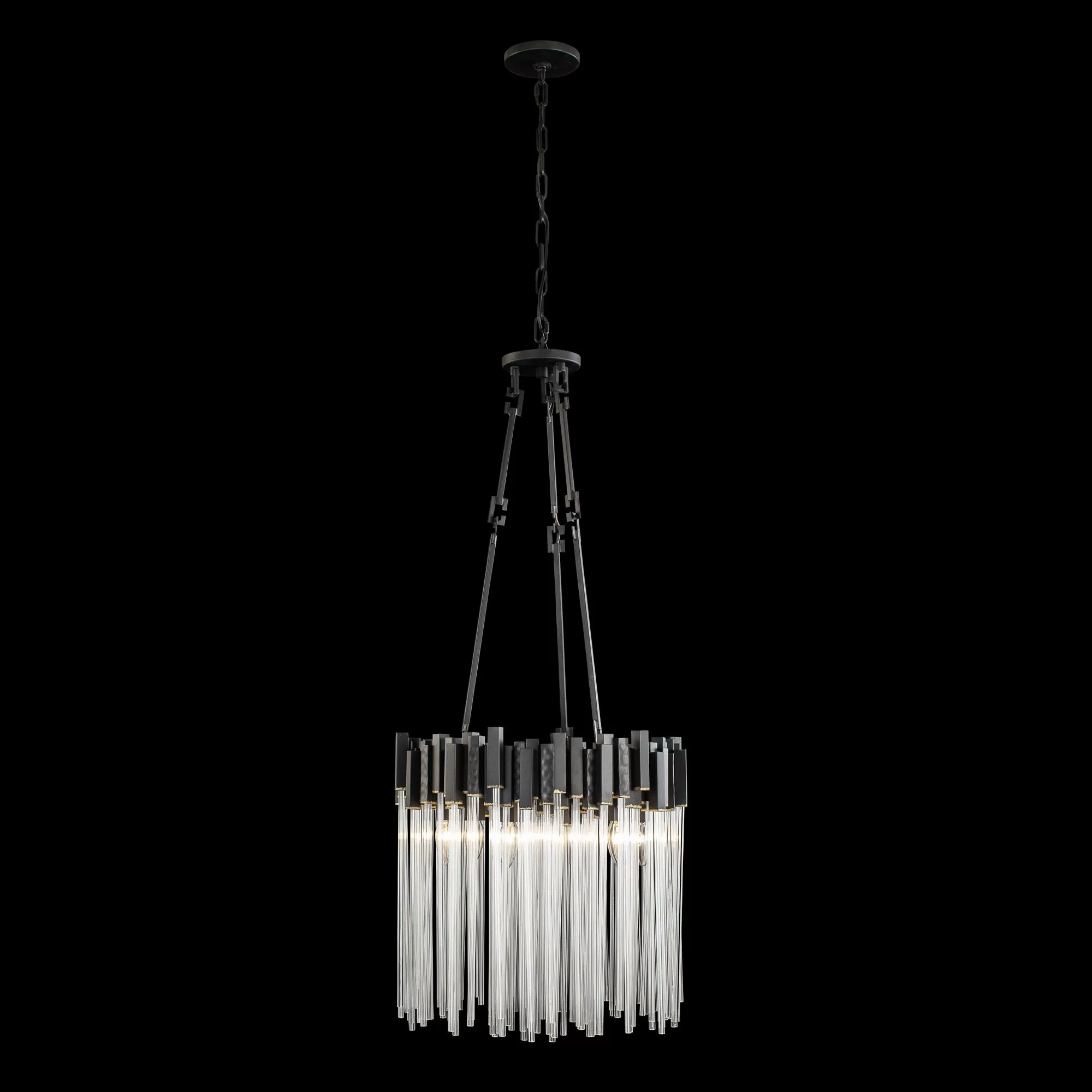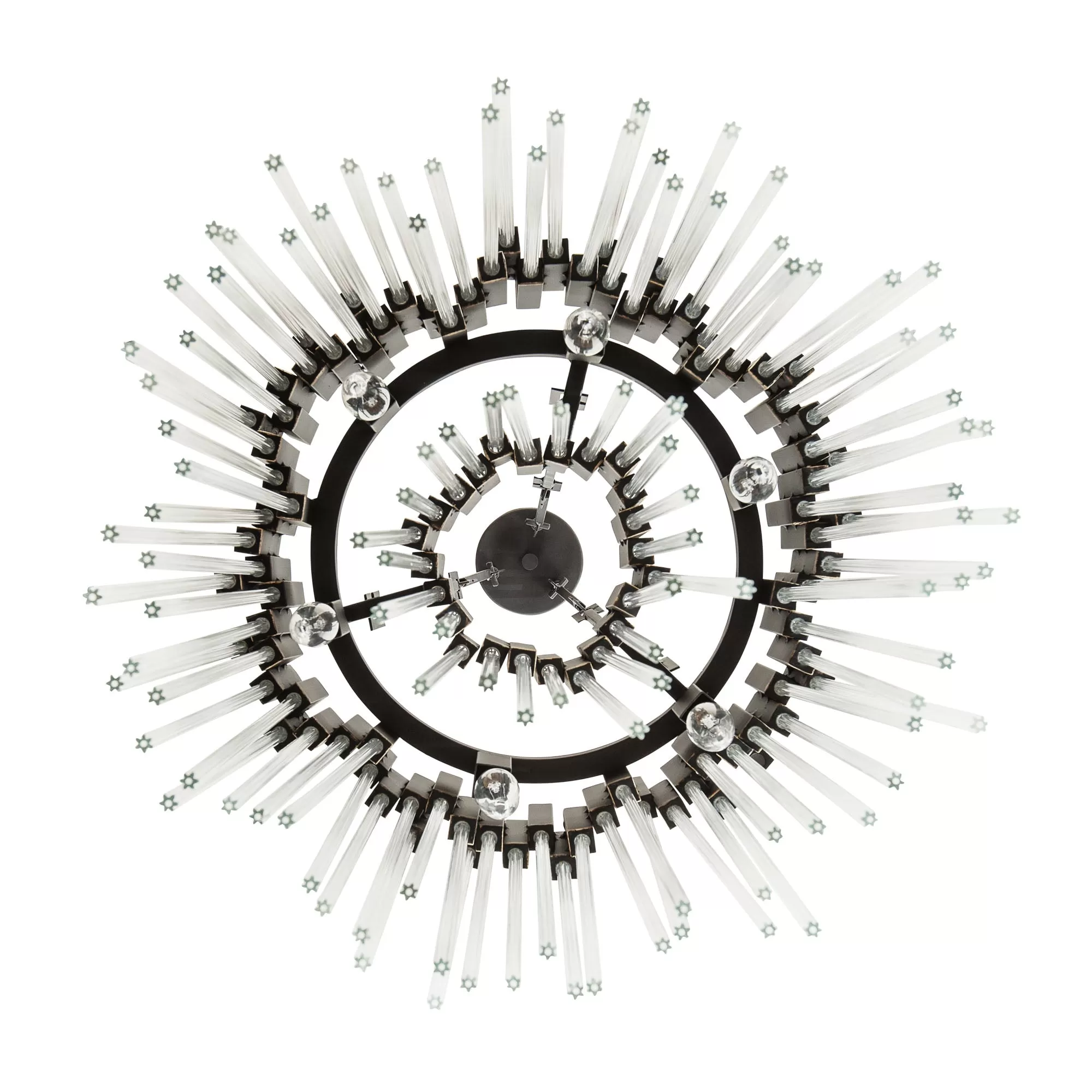 Hand Forged Recycled Steel. Handsomely Hammered Elements. Fluted 70’S Inspired Clear Glass Rods.
