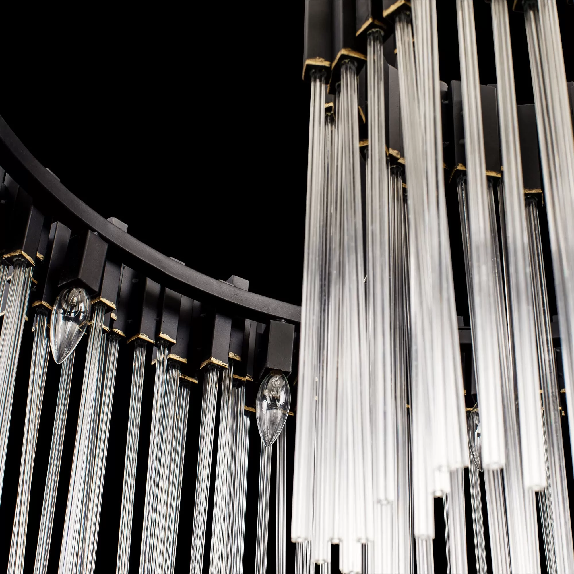 Hand Forged Recycled Steel. Handsomely Hammered Elements. Fluted 70’S Inspired Clear Glass Rods.