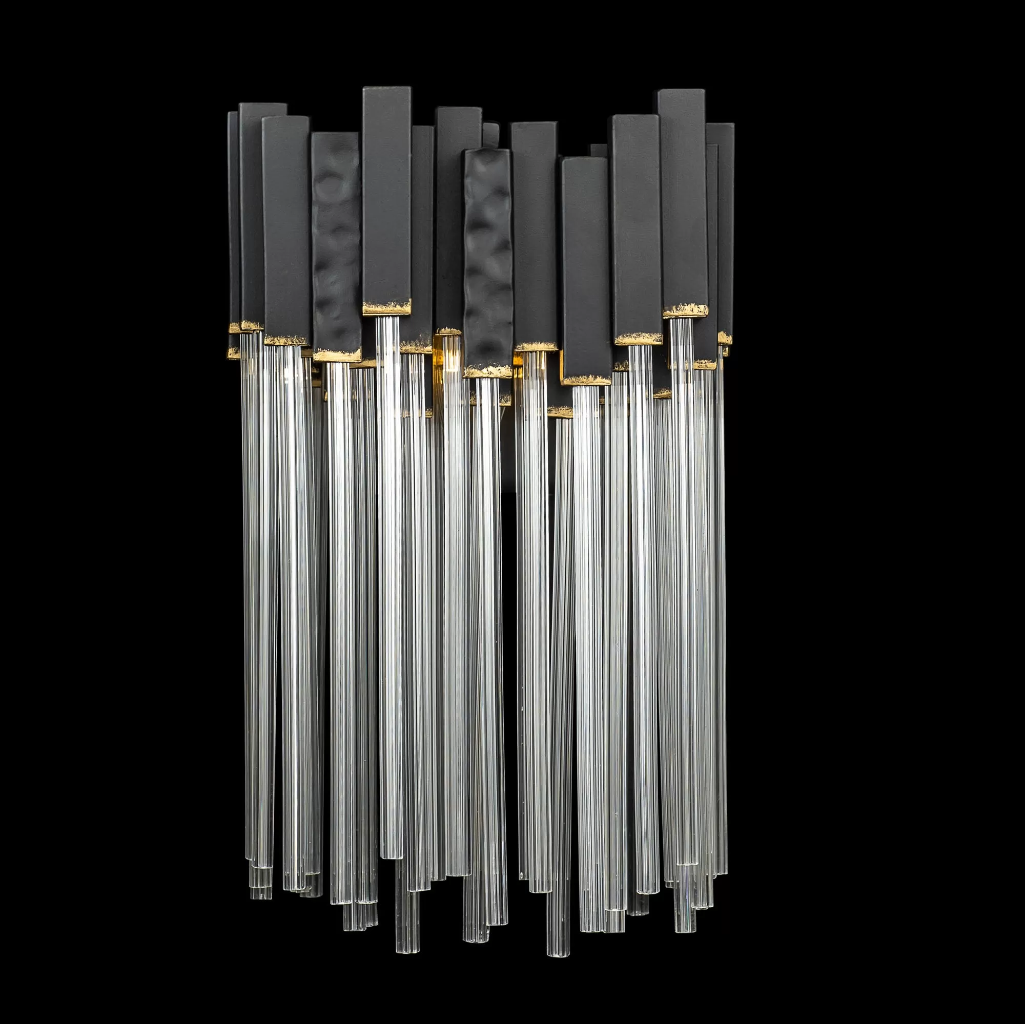 Hand Forged Recycled Steel. Handsomely Hammered Elements. Fluted 70’S Inspired Clear Glass Rods.