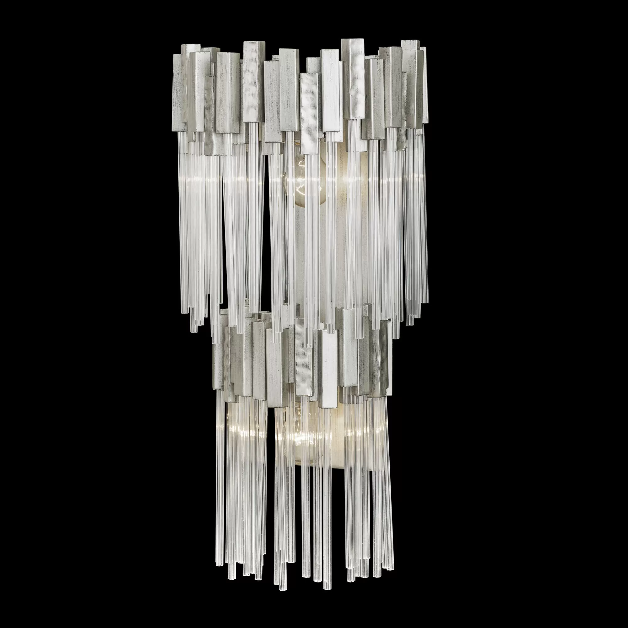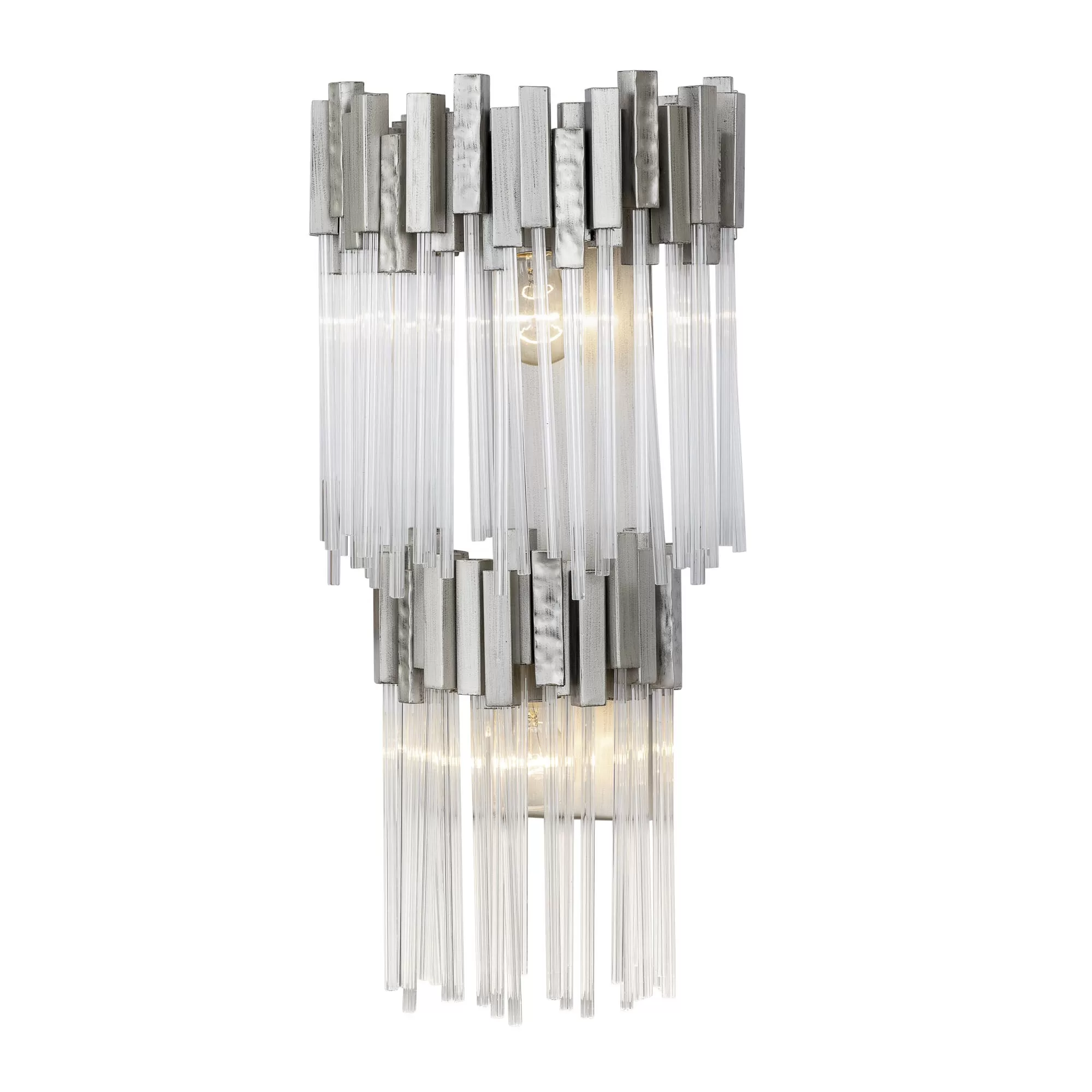 Hand Forged Recycled Steel. Handsomely Hammered Elements. Fluted 70’S Inspired Clear Glass Rods.