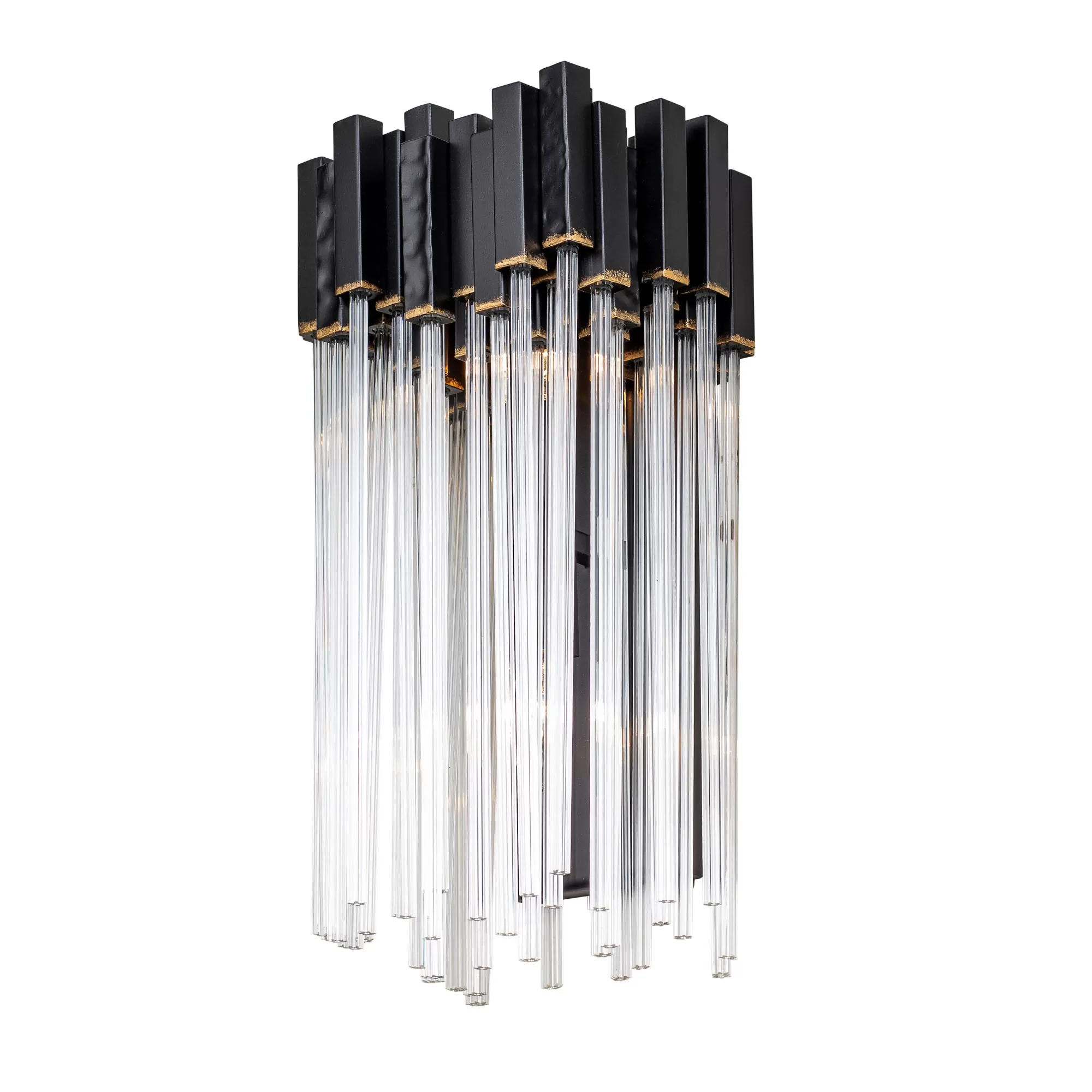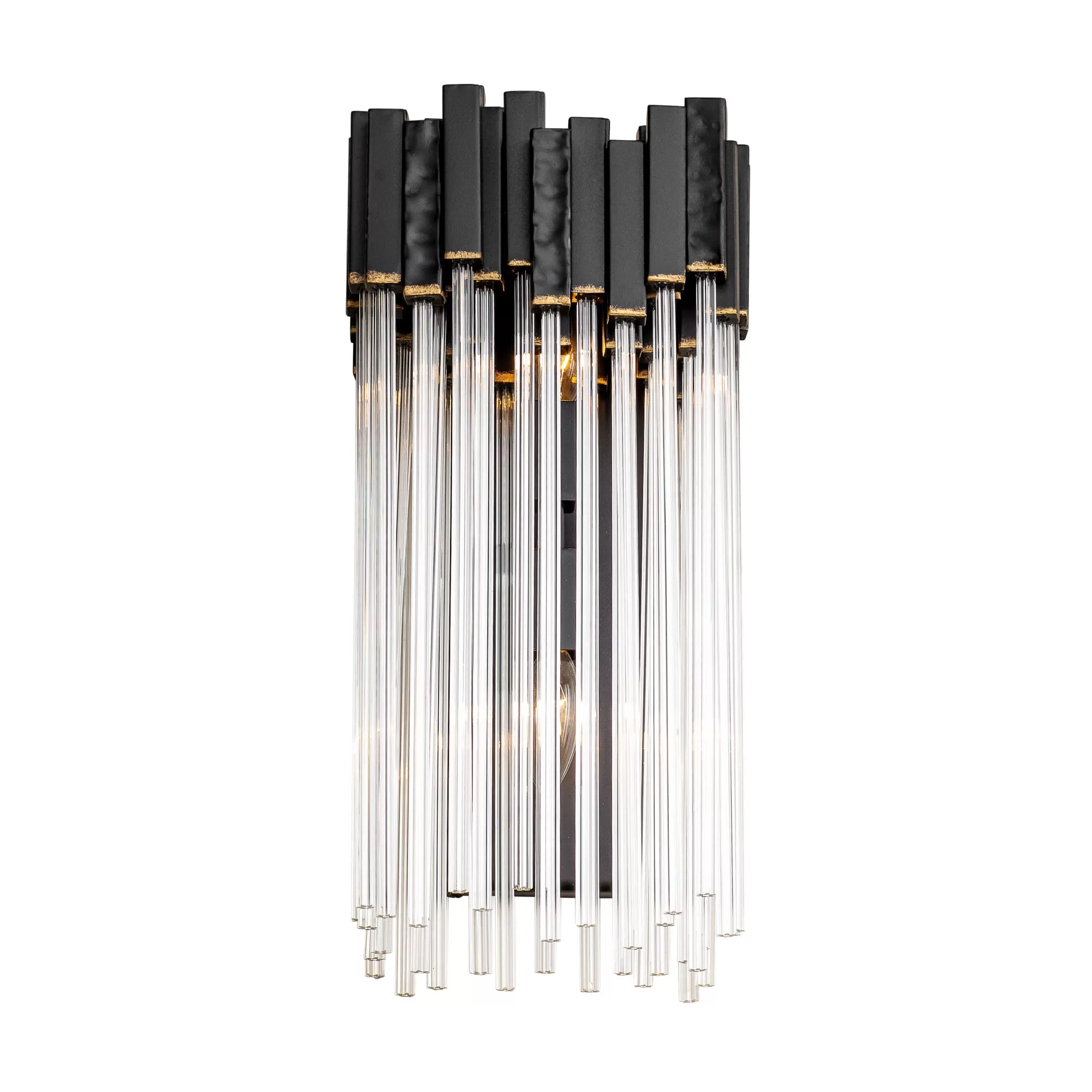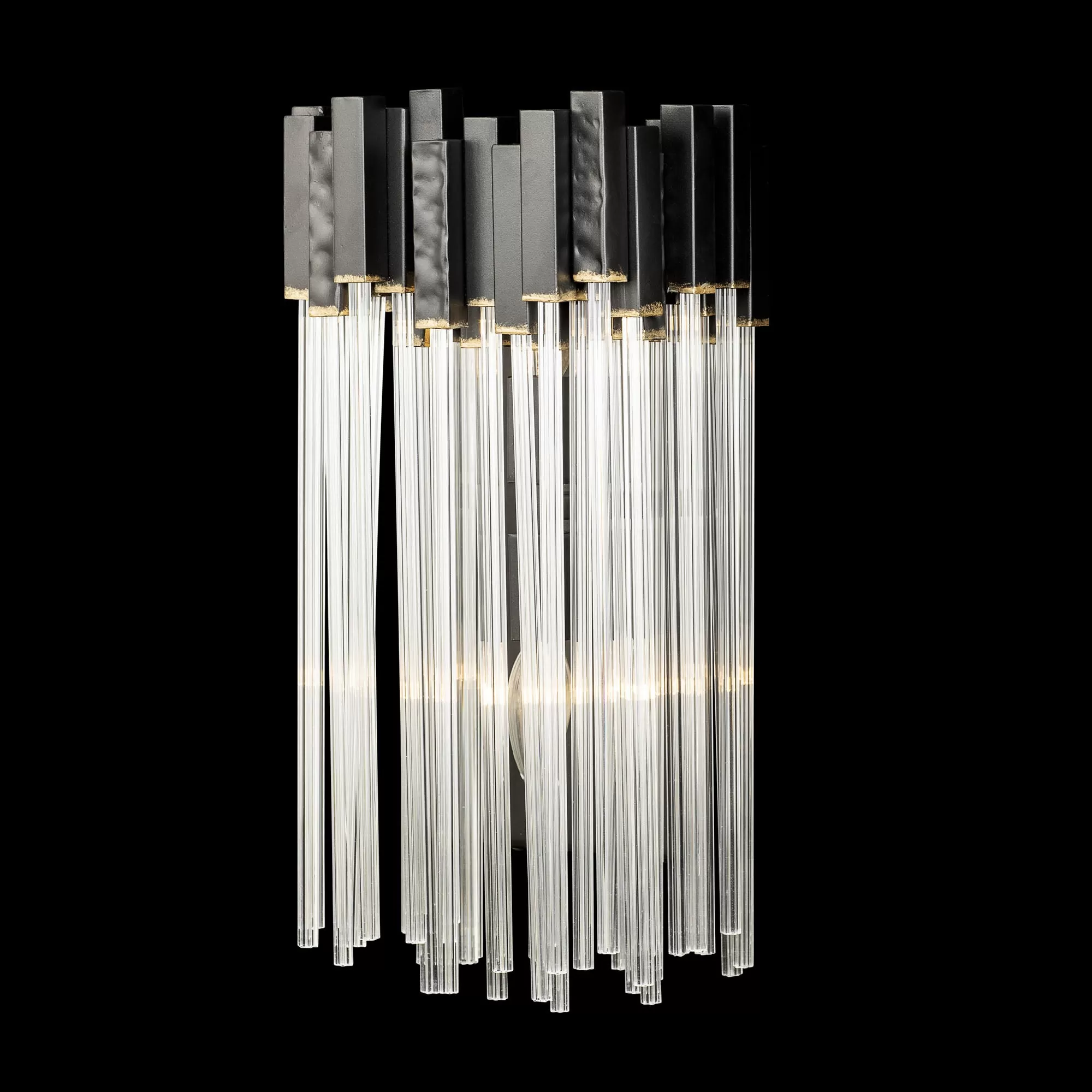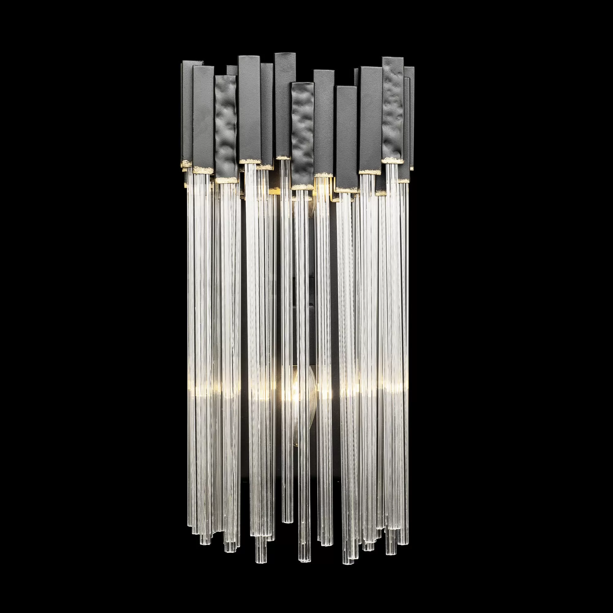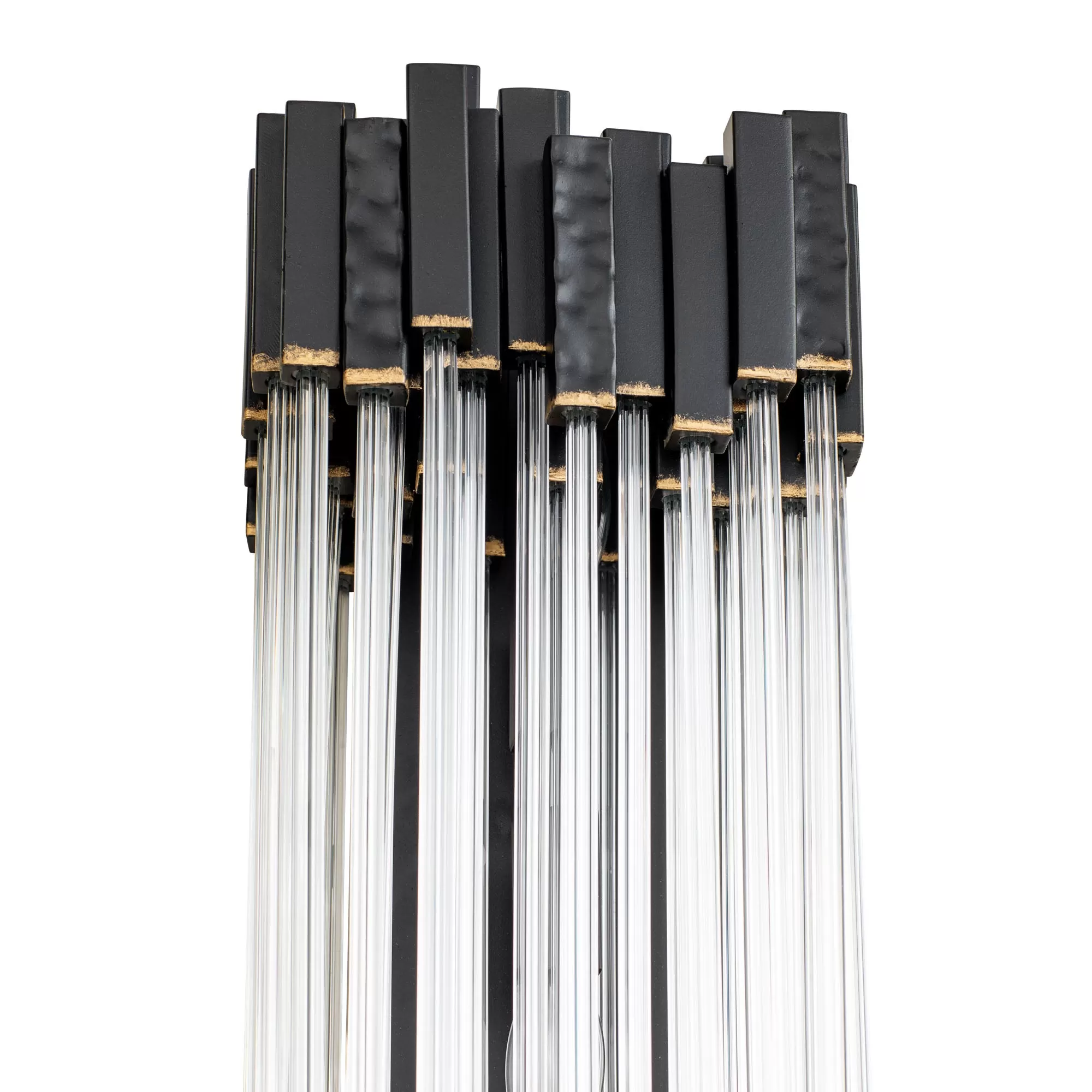 Hand Forged Recycled Steel. Handsomely Hammered Elements. Fluted 70’S Inspired Clear Glass Rods.
