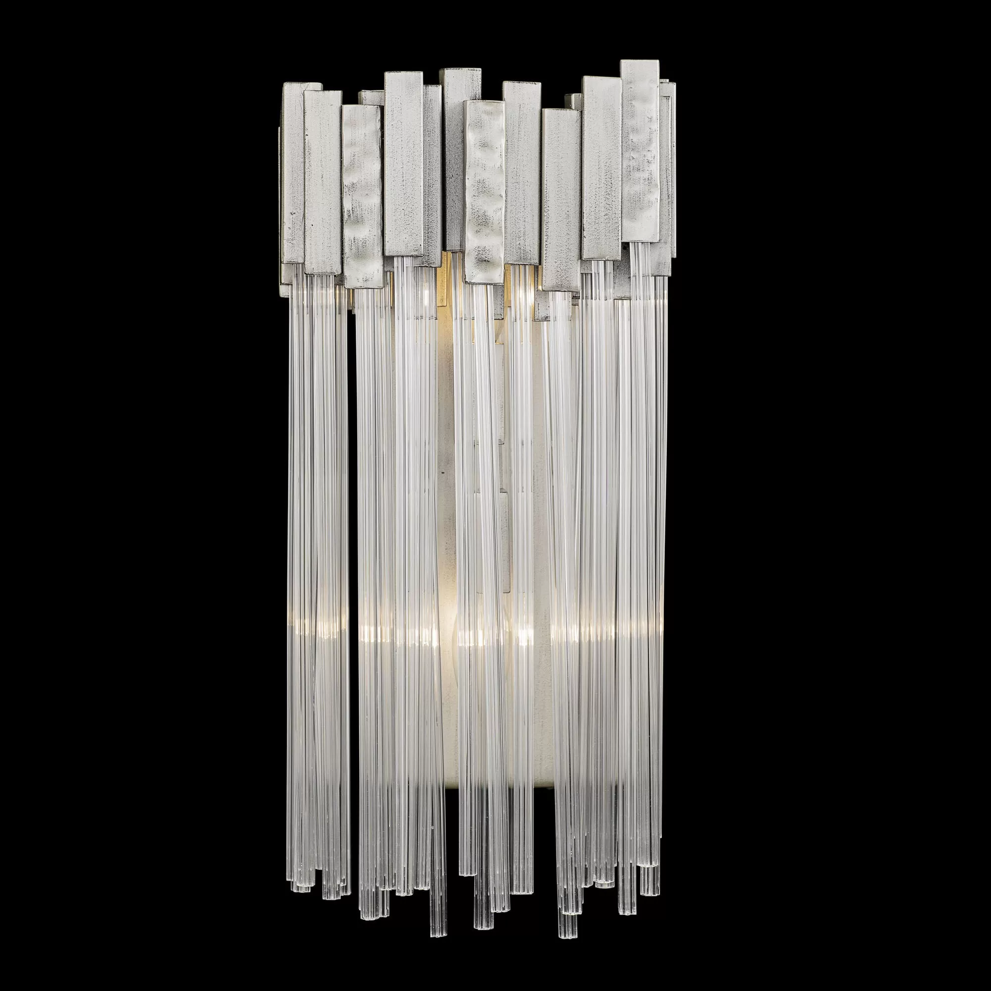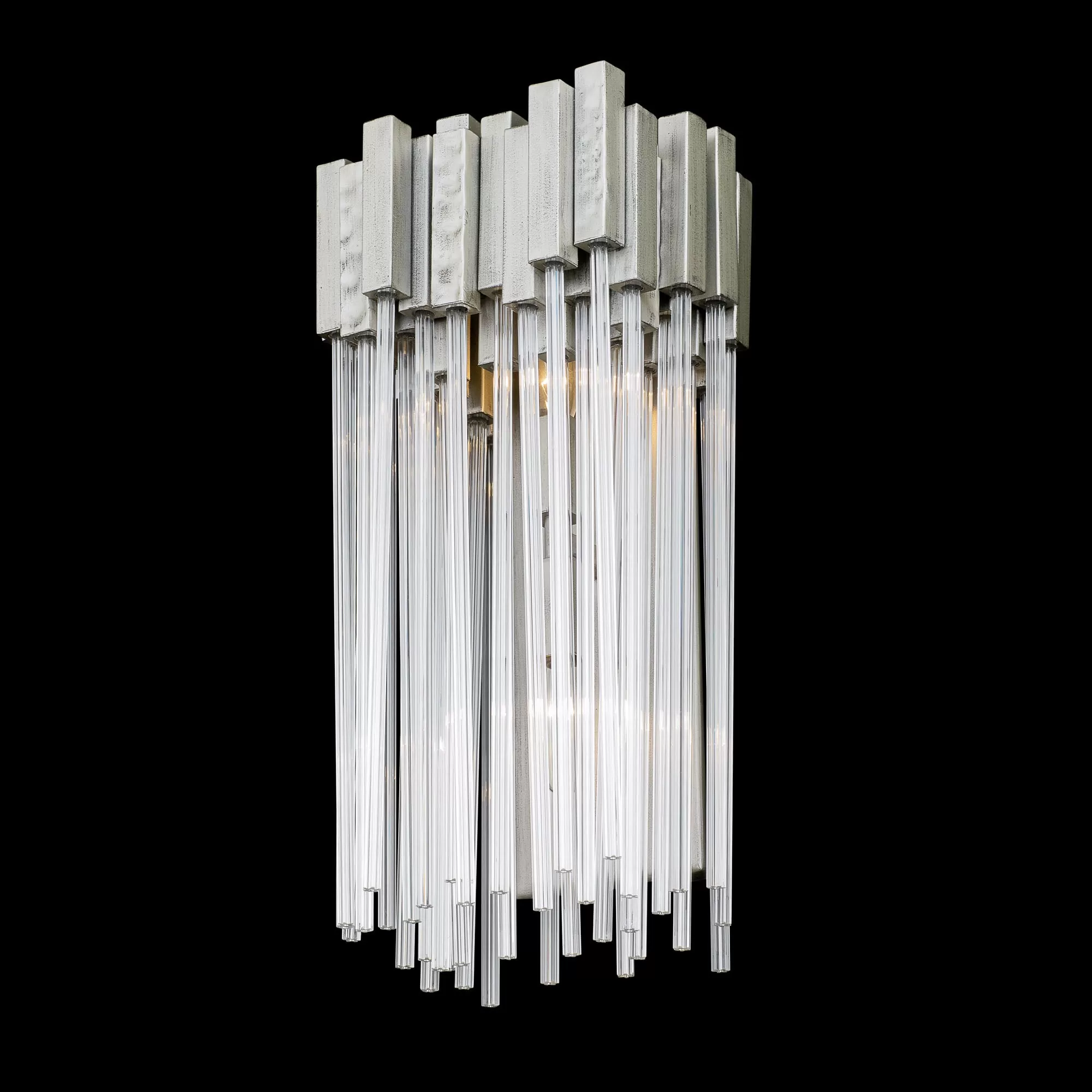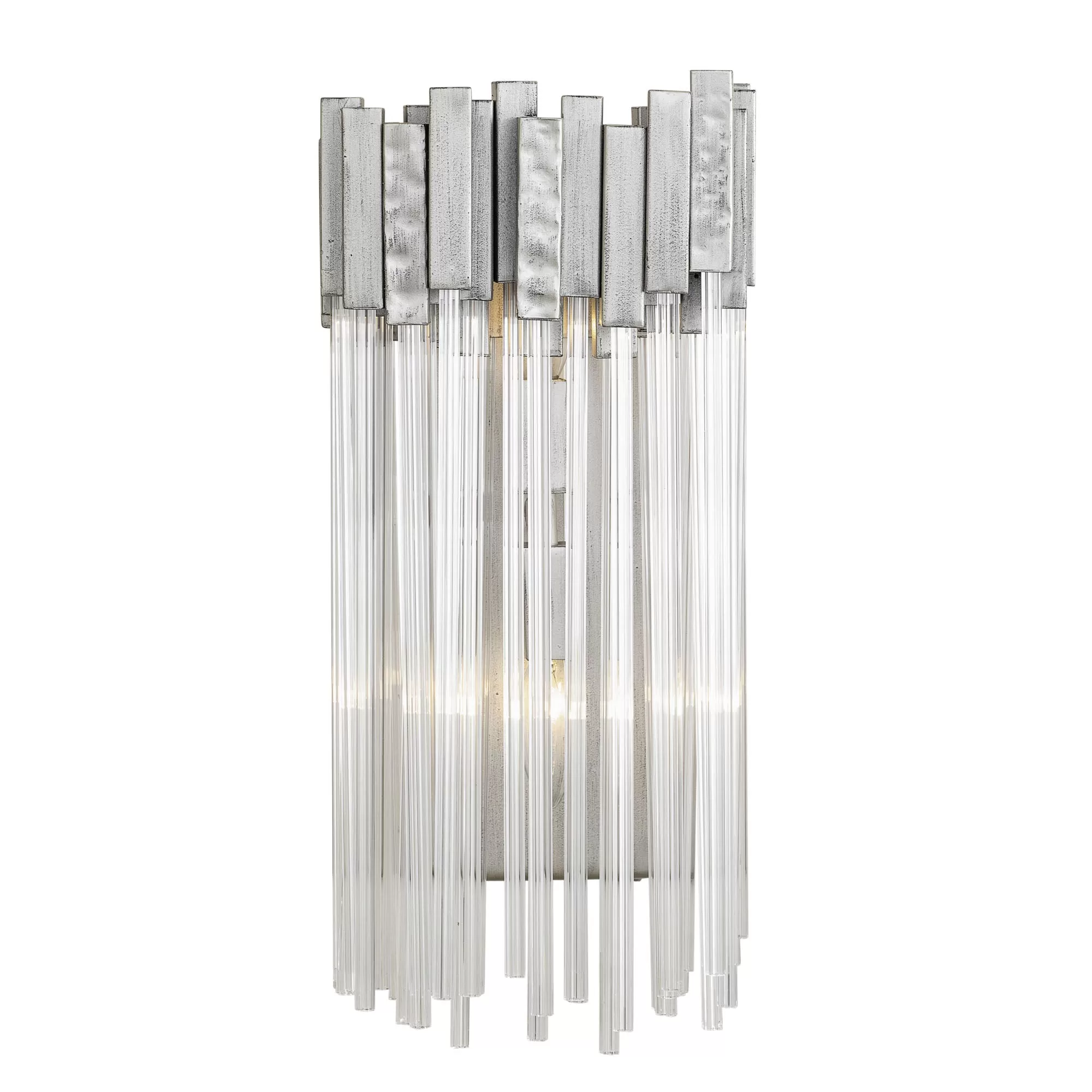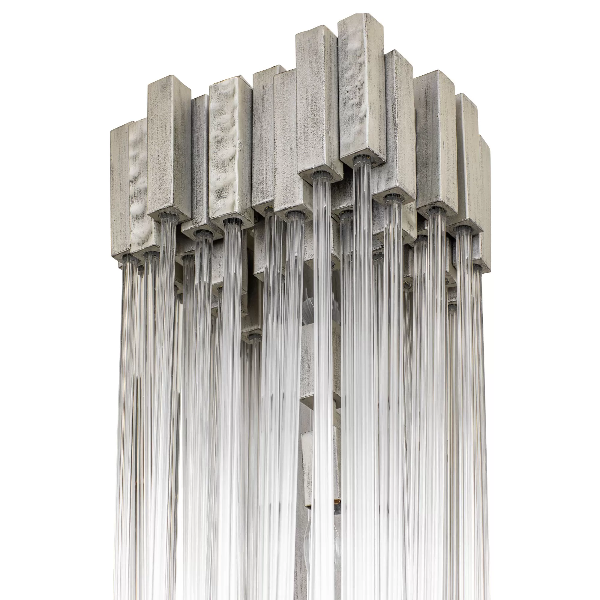 Hand Forged Recycled Steel. Handsomely Hammered Elements. Fluted 70’S Inspired Clear Glass Rods.