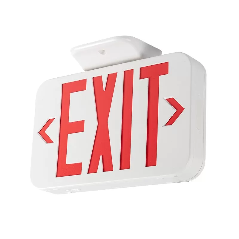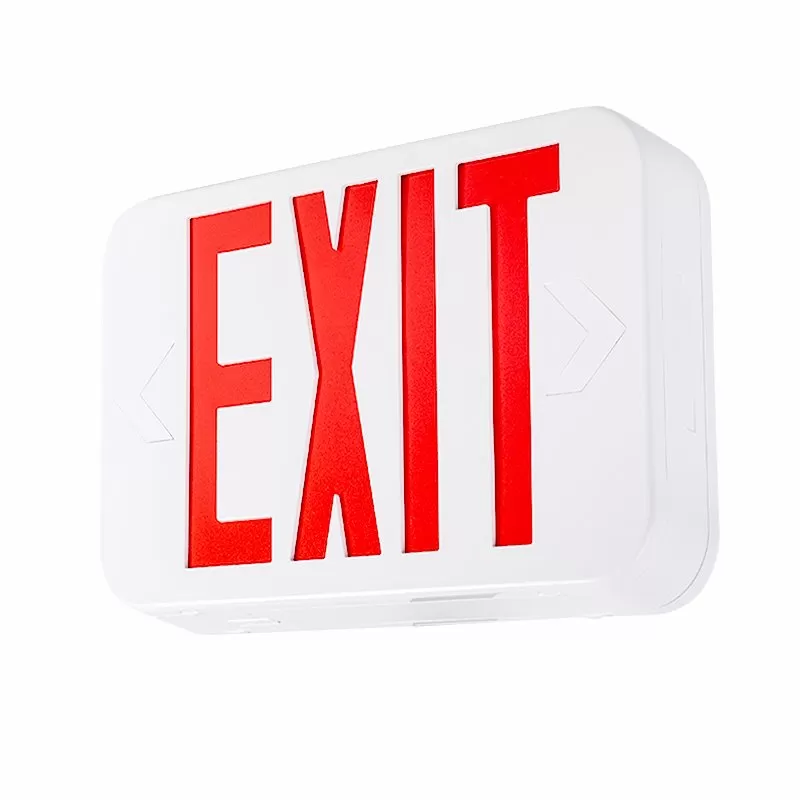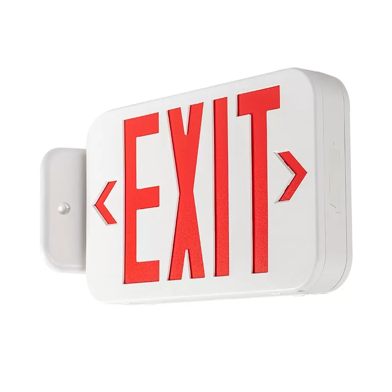 The MaxLite exit light is constructed of high impact UV stabilized flame rated thermoplastic housing. They have a NiCad battery that provides up to 90 minutes of emergency light on a single charge. A test switch and indicator switch are on the fixture. The light has wall or ceiling mounting capabilities and can be single or double face.