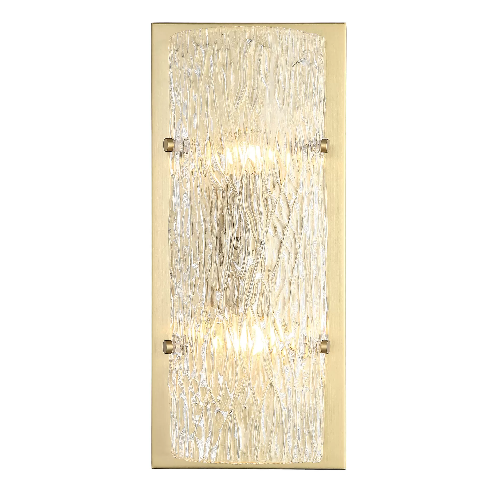 Hand-made Ice Glass with Pattern Stamped on Both Sides. Slightly Oversize Back Plate Creates a Visual Frame. Adjustable Hardware.