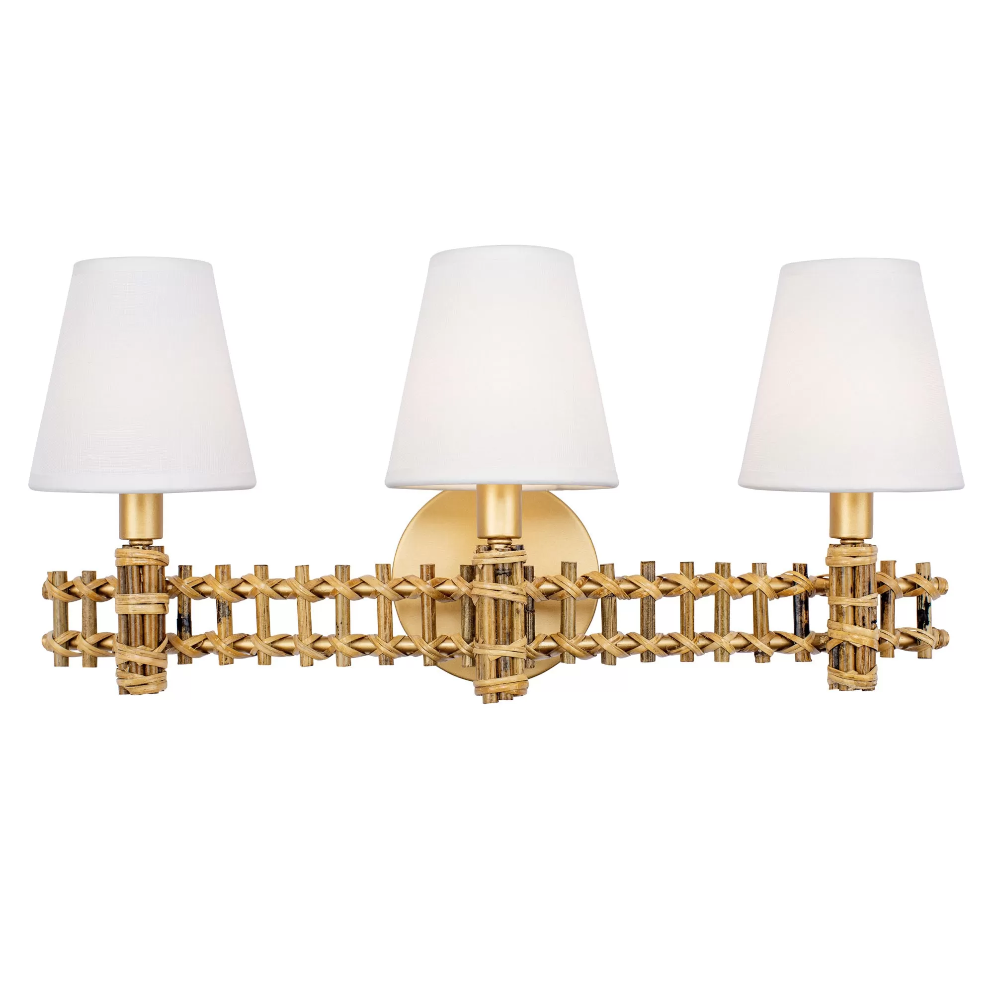 An island in the West Indies, Nevis, derives its name from Spanish meaning, “Our Lady of the Snows.” It is a reference to the story of a 4th-century Catholic miracle: a snowfall on the Esquiline Hill in Rome. The image of a miraculous snow-covered peak rising from a hot climate, is the design inspiration behind Nevis by Varaluz. This dichotomy is echoed by pairing white peaked linen shades with natural and sustainable rattan that emulates tropical bamboo, for a modern take on tropical inspired lighting.