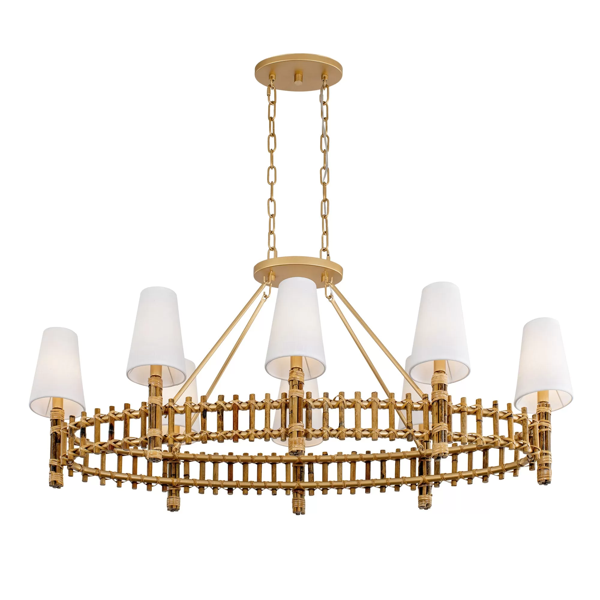 An island in the West Indies, Nevis, derives its name from Spanish meaning, “Our Lady of the Snows.” It is a reference to the story of a 4th-century Catholic miracle: a snowfall on the Esquiline Hill in Rome. The image of a miraculous snow-covered peak rising from a hot climate, is the design inspiration behind Nevis by Varaluz. This dichotomy is echoed by pairing white peaked linen shades with natural and sustainable rattan that emulates tropical bamboo, for a modern take on tropical inspired lighting.