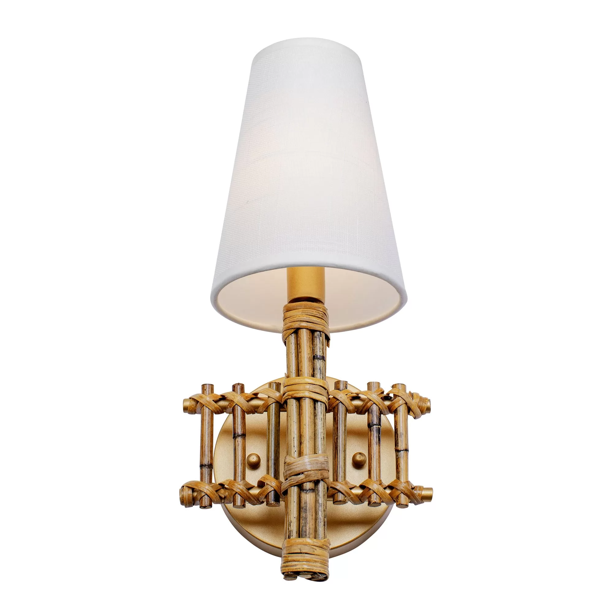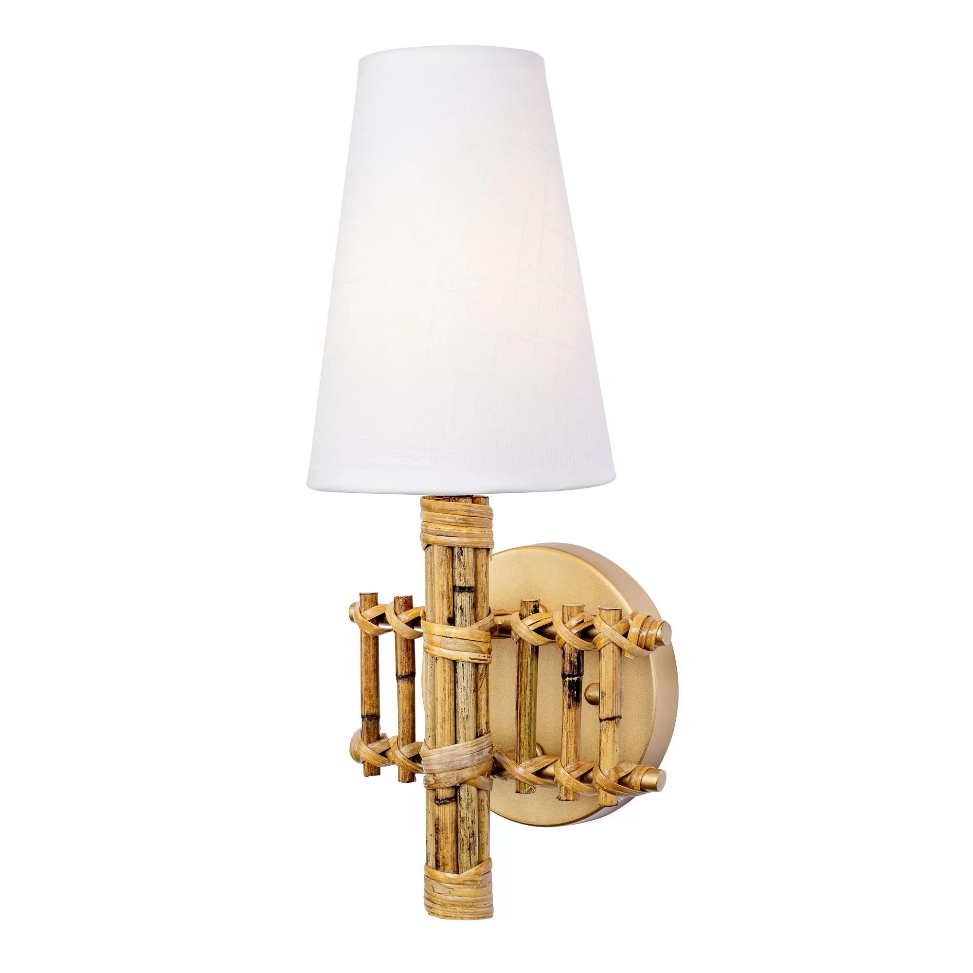 An island in the West Indies, Nevis, derives its name from Spanish meaning, “Our Lady of the Snows.” It is a reference to the story of a 4th-century Catholic miracle: a snowfall on the Esquiline Hill in Rome. The image of a miraculous snow-covered peak rising from a hot climate, is the design inspiration behind Nevis by Varaluz. This dichotomy is echoed by pairing white peaked linen shades with natural and sustainable rattan that emulates tropical bamboo, for a modern take on tropical inspired lighting.