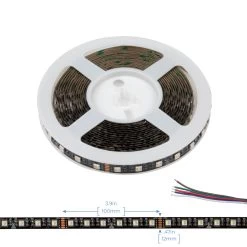 5m Black PCB RGBW LED Strip Light – 5050 Color-Changing LED Tape Light – 24V – IP20