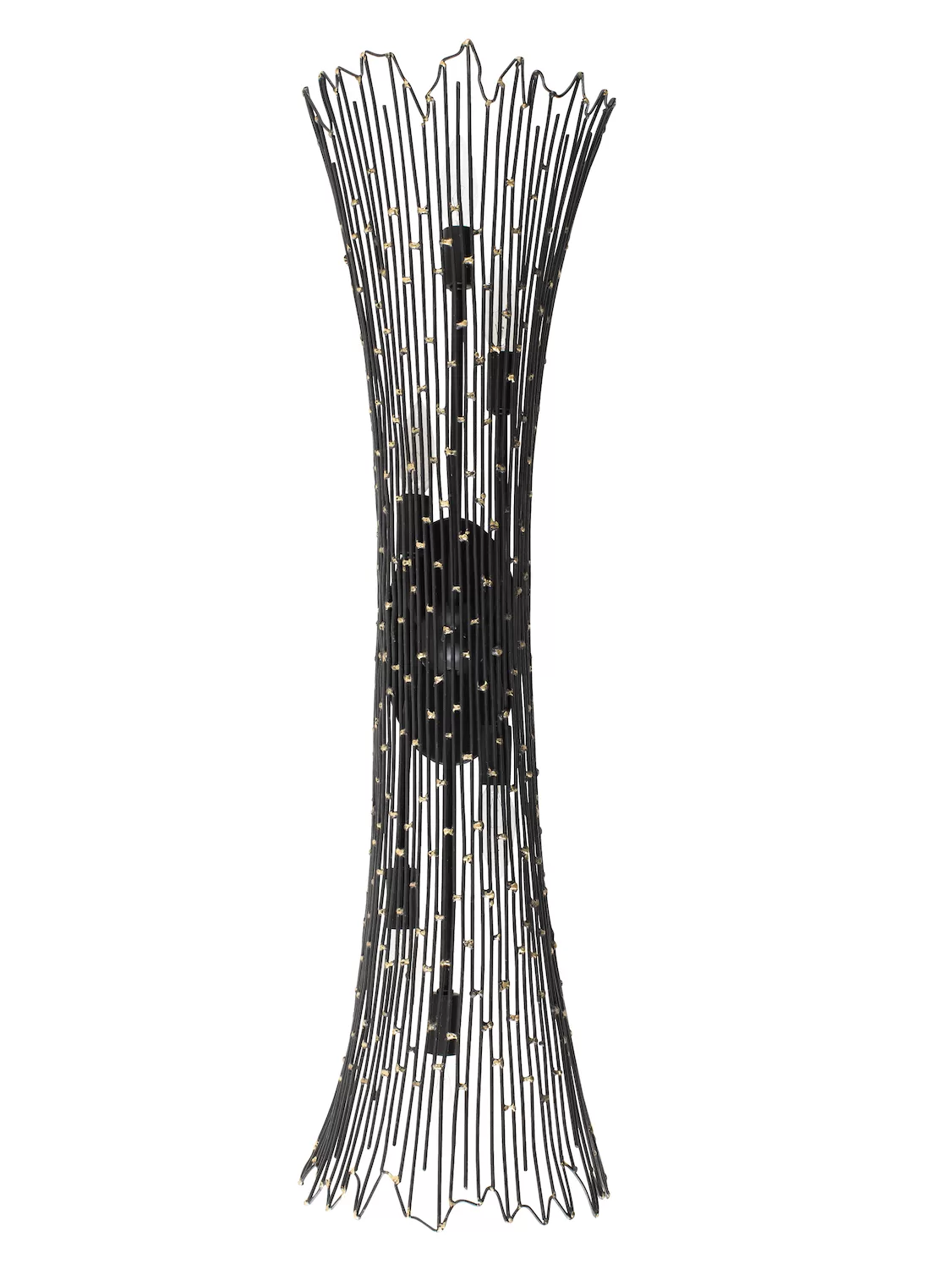 Looking for a tropical getaway far from the typical? Look no further than Rikki. Inspired by both natural, earthy shapes and Tiki Modern architecture, Rikki is a perfect staycation piece for your home. Hand crafted out of recycled steel and hand painted carbon black with glam aged gold accents.