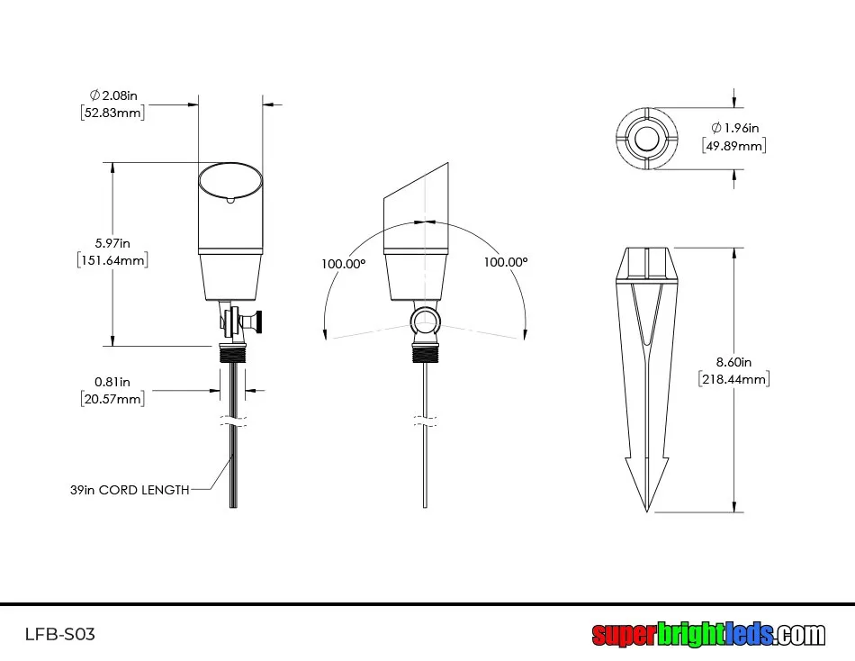 Solid Brass LED Ready Landscape Spot Light - Optional RGB + Tunable White MR16 Smart Bulb - Smartphone Compatible - Optional RF Remote -Lighting Decoration Store lfb s03 full view