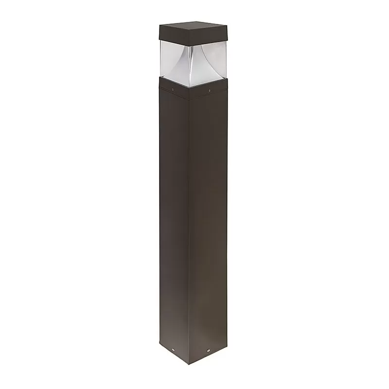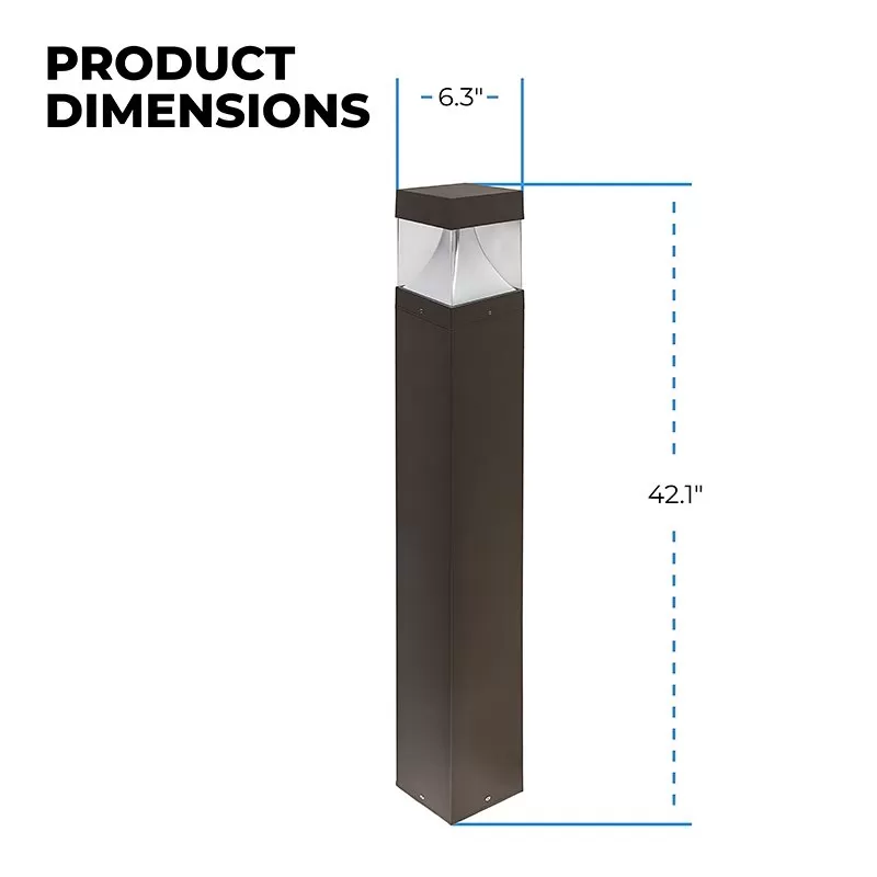 Square LED Bollard brings added safety and aesthetics to commercial locations such as building entryways, pathways, and perimeters. Diffused cone reflector projects downward light for ideal spacing and reduced pedestrian glare. Architectural-grade materials include die cast aluminum housing, powder coated to with stand outdoor conditions. Sealed polycarbonate lens prevents condensation and fogging. with better efficacy and reliability than traditional metal halides, the integrated LEDs eliminate the hassle of replacing bulbs and ballasts in rusty old bollards.