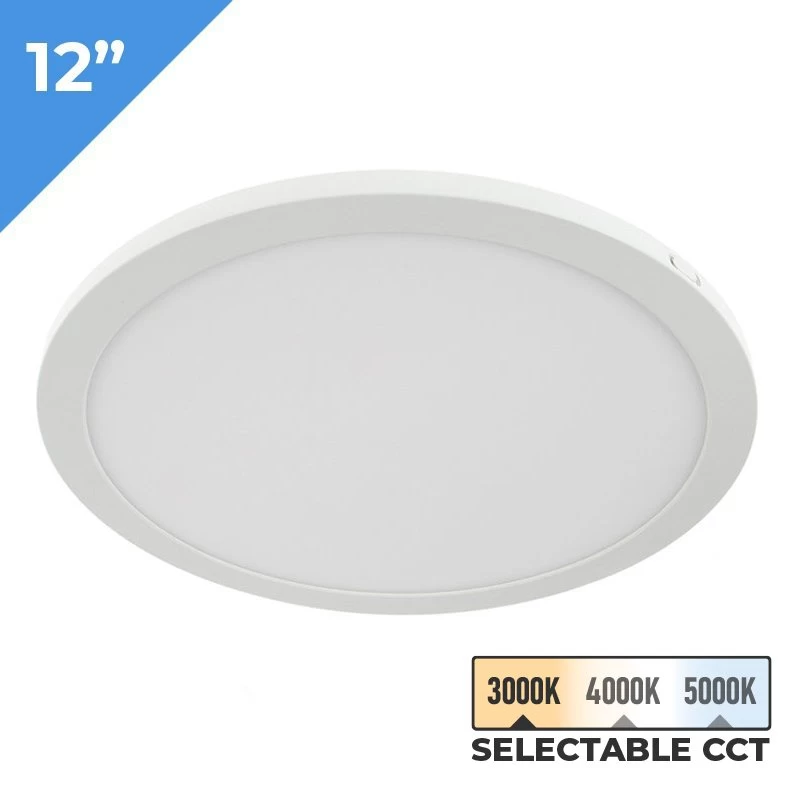 TCP’s 12″ LED Slim Flush Mount Fixtures are perfect for new construction or retrofit projects. They are color selectable and are available with multiple color trim options for a custom design. The field-selectable CCT allows you to select the color temperature that best suits your needs. The frosted lens diffuses the 120° beam angle, producing a uniform light distribution. Install directly to a junction box or within a 5″ or 6″ recessed can. IC Rated for contact with insulation.