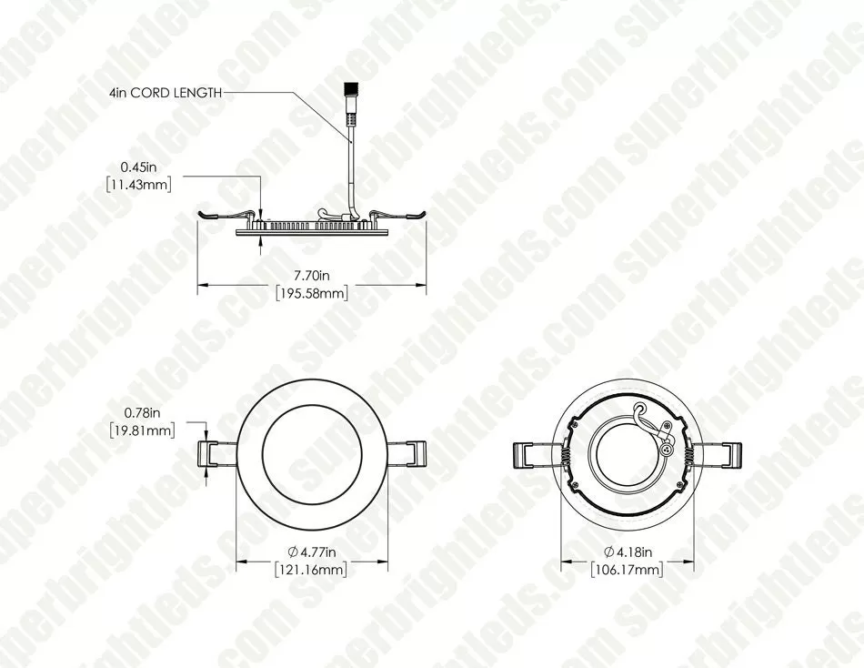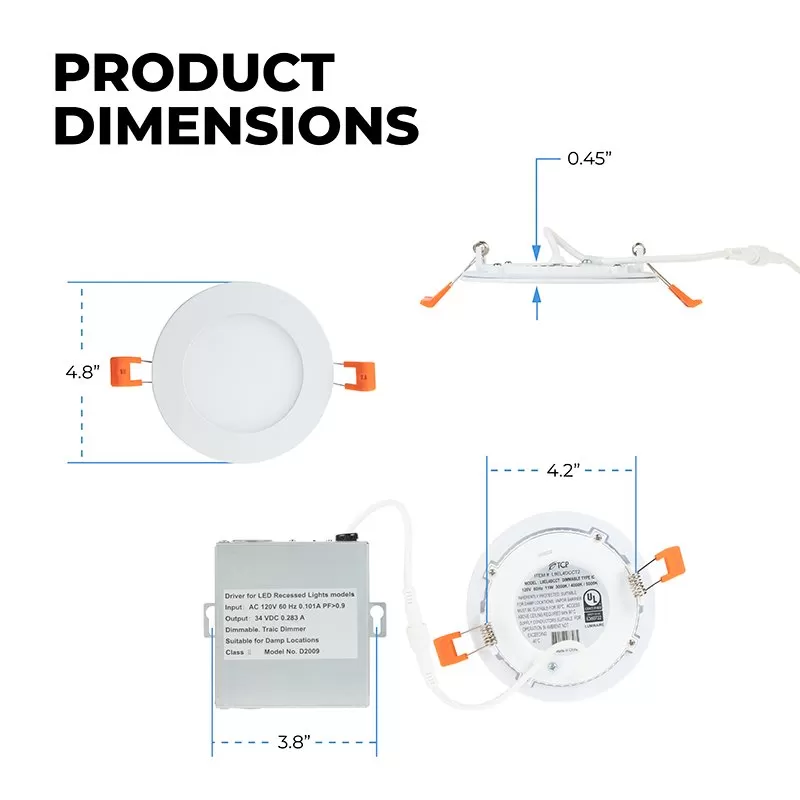 TCP’s 4″ LED Edge-Lit Snap-In CCT Selectable Downlights are the perfect choice for remodeling or new construction projects. The slim, energy-efficient design is easy to install and offers a rated lifetime of 50,000 hours. The field-selectable CCT allows you to select the color temperature that best suits your needs. Install the ultra-thin downlight without a j-box or can light housing, securing the fixture using the spring tabs.