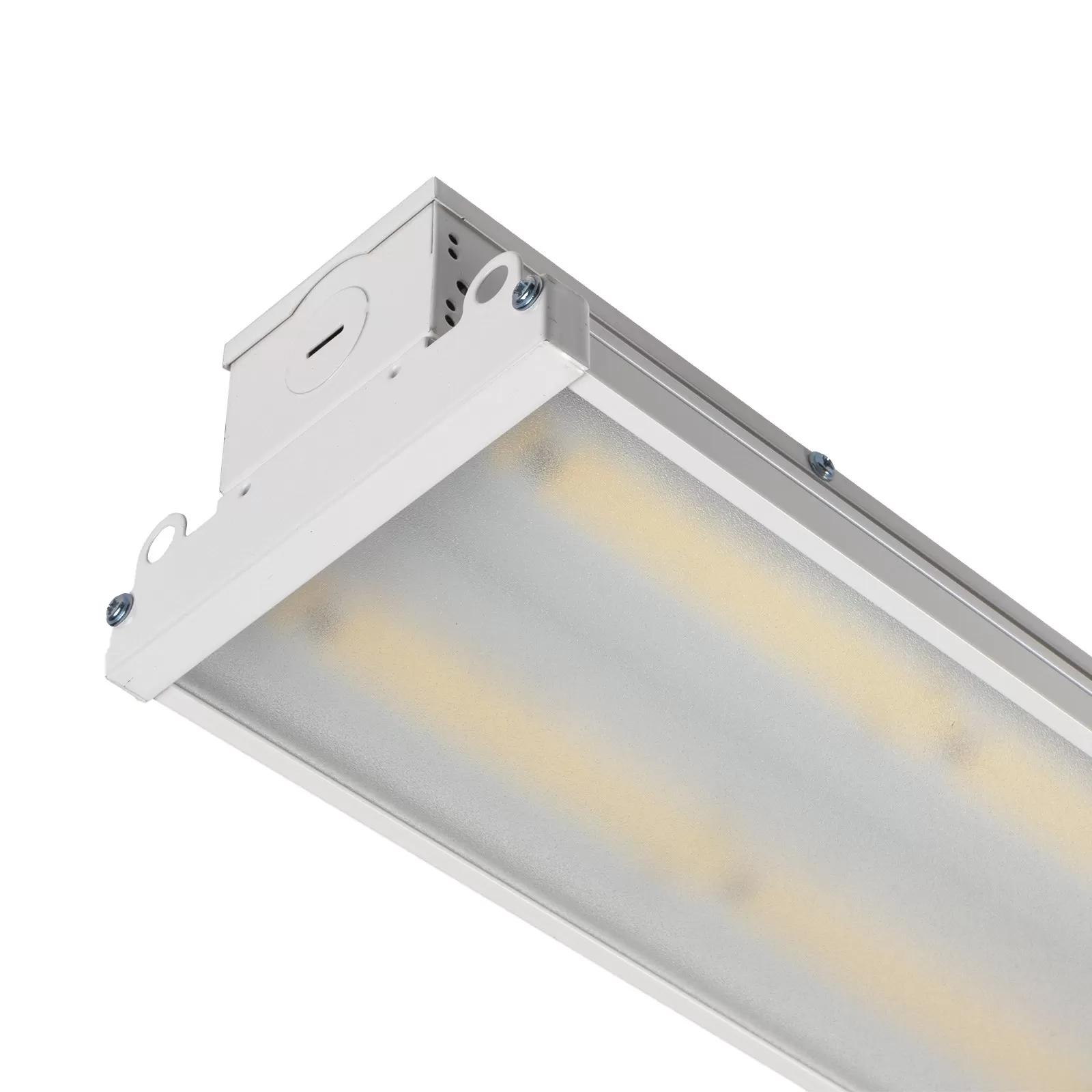 - Steel housing with a frosted lens for reducing glare