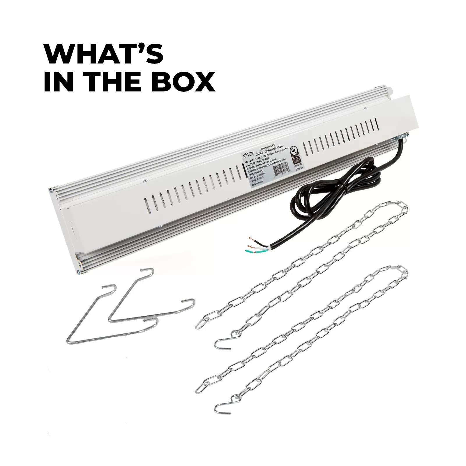 The QTL Series High Bay fixture features a lightweight extruded aluminum body and delivers 17,550 lumens resulting in a versatile solution for multiple applications. The included mounting hardware makes the QHB2UZDE450K High Bay easy to install and will provide a long-lasting, durable light source for commercial and industrial applications.