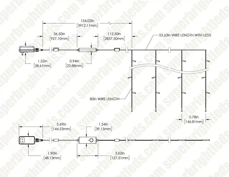 Twinkly Curtain - RGB+W LED Curtain Light String - App-Controlled - Generation II - 210 LED - 1.5x2.1m -Lighting Decoration Store tww210spp tus dim drawing