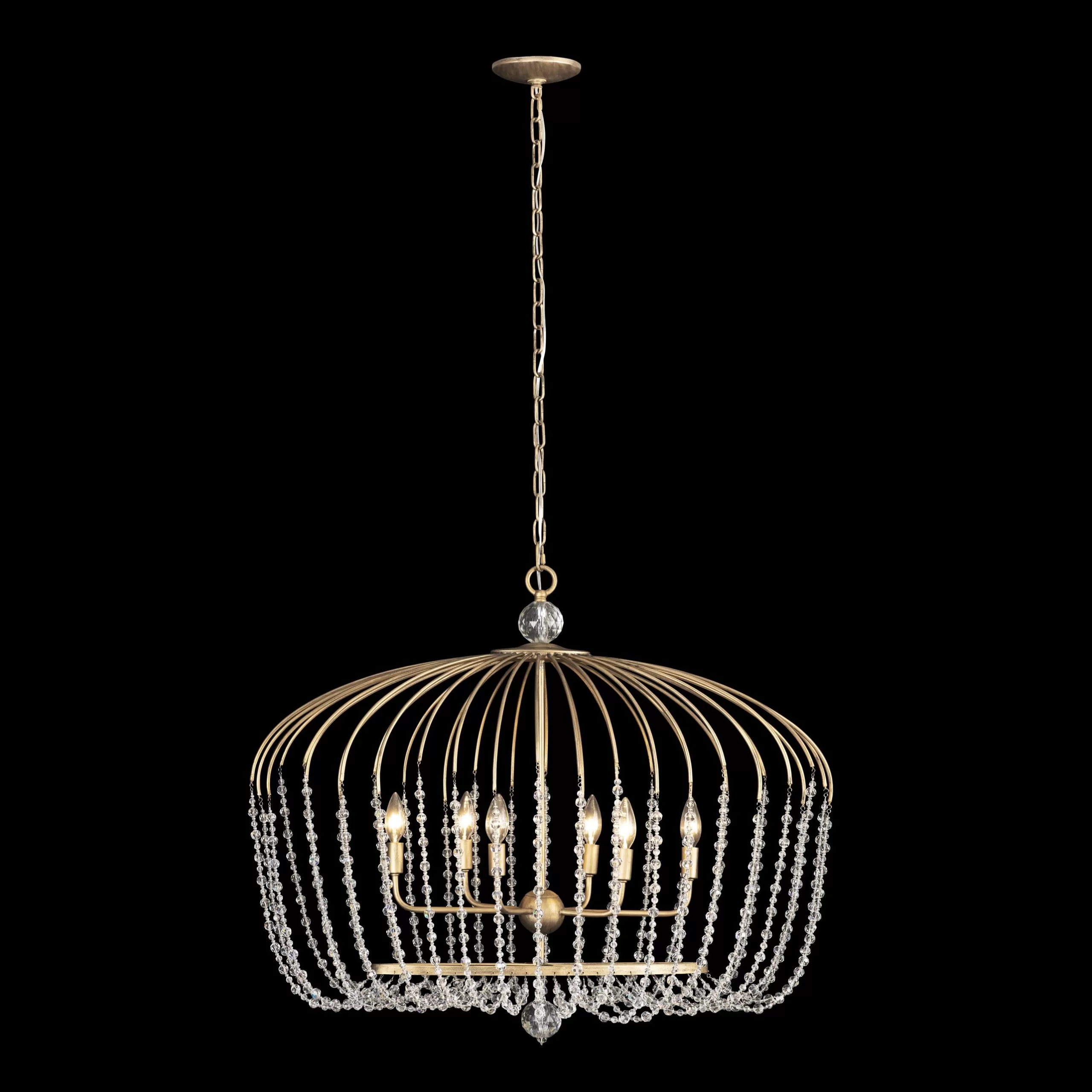 Parasol frames meet their crystal crush in this new pendant collection. Umbrella frames, carnival rides and birdcages clearly present in the design. But Continuing the frame lines with crystal is an unusal twist. Glam, coastal and cottage all coalesce together into one pretty, shimmery and airy pendant.